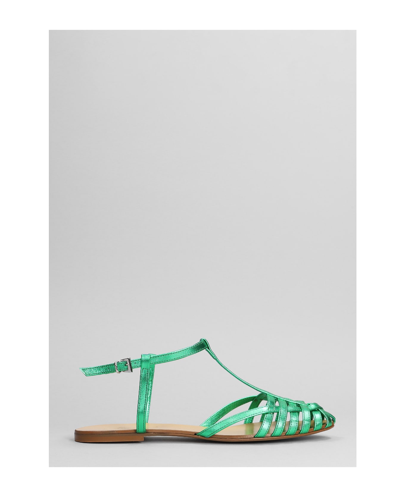 Flats in green leather, multiple thin straps, ankle strap, leather sole, Made in Italy, 100% leather
