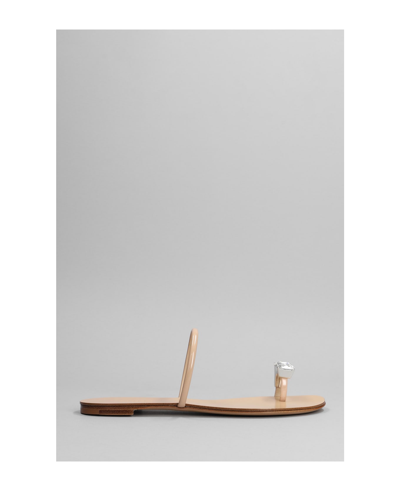 Flats in powder patent leather, iconic ring detail, open toe, rock crystal, leather sole, Made in Italy