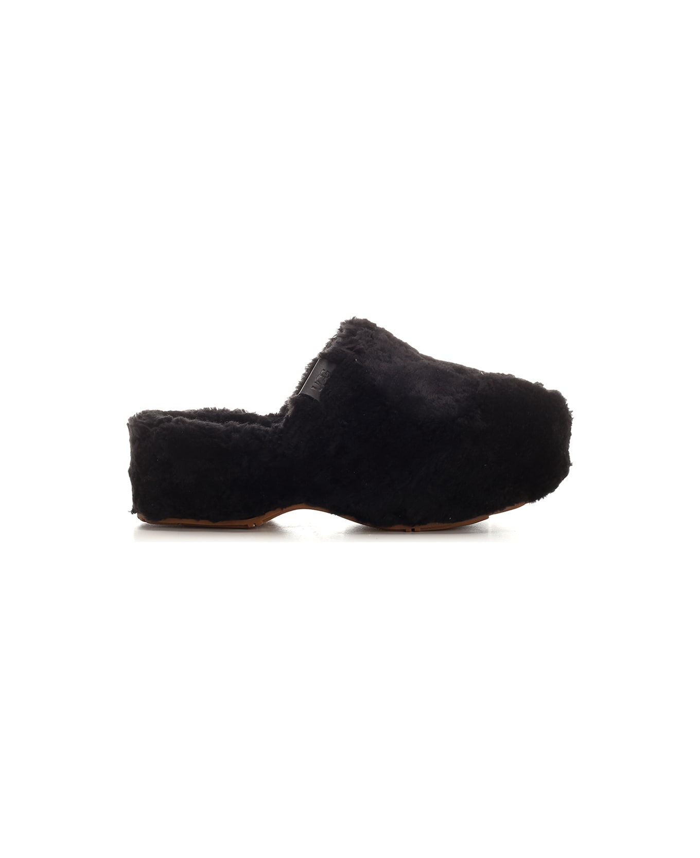 "Fuzz Sugar" clogs by Ugg in black faux fur