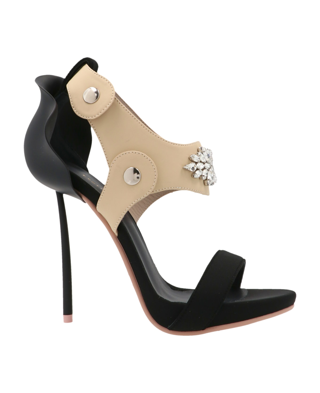 'Ghetta' nylon sandals with a contrast leather strap with a jewel application and stiletto heels.