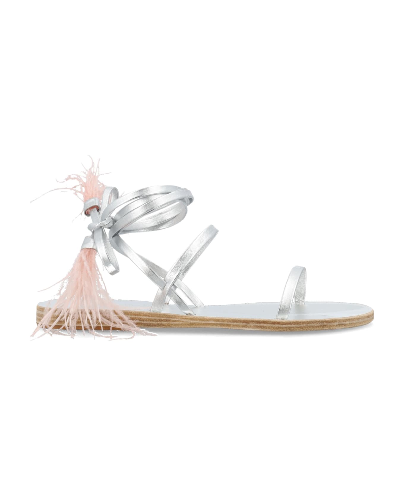 Leather Giorti Marabu Feathers By Ancient Greek Sandals. Featuring: Flat Sandals Two Thin Straps Wrap-around Ankle Straps With Feather Tassels Logo Engraved Insole