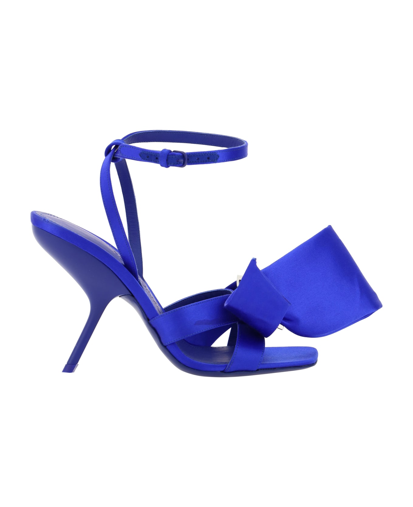 Calfskin helena sandals by ferragamo, a geometric leather heel, an adjustable round ankle strap, a square toe, a wide bow appliqué on the front, a logo-embossed insole, and a monochrome design.