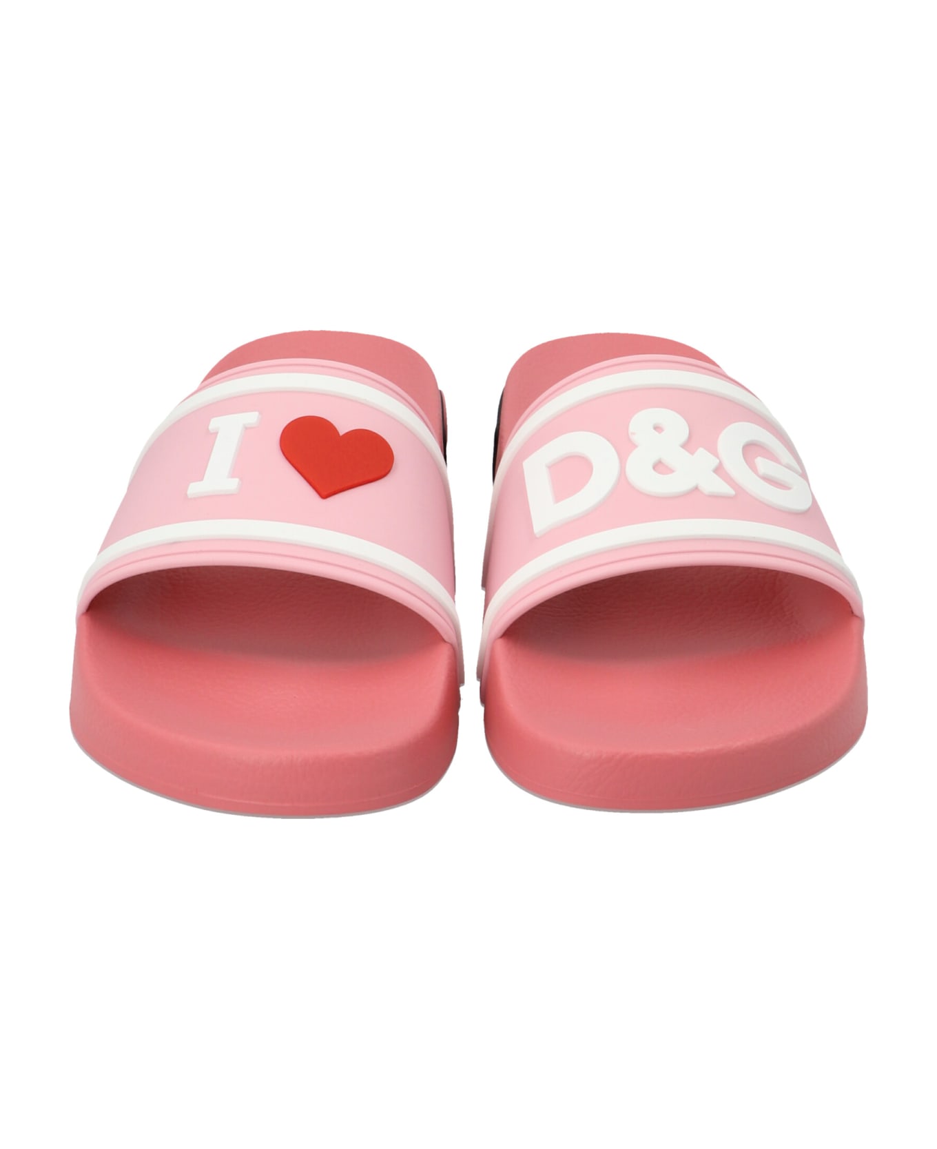 Dolce & Gabbana 'I Love D&G' rubber slides with a logo and contrasting sole.