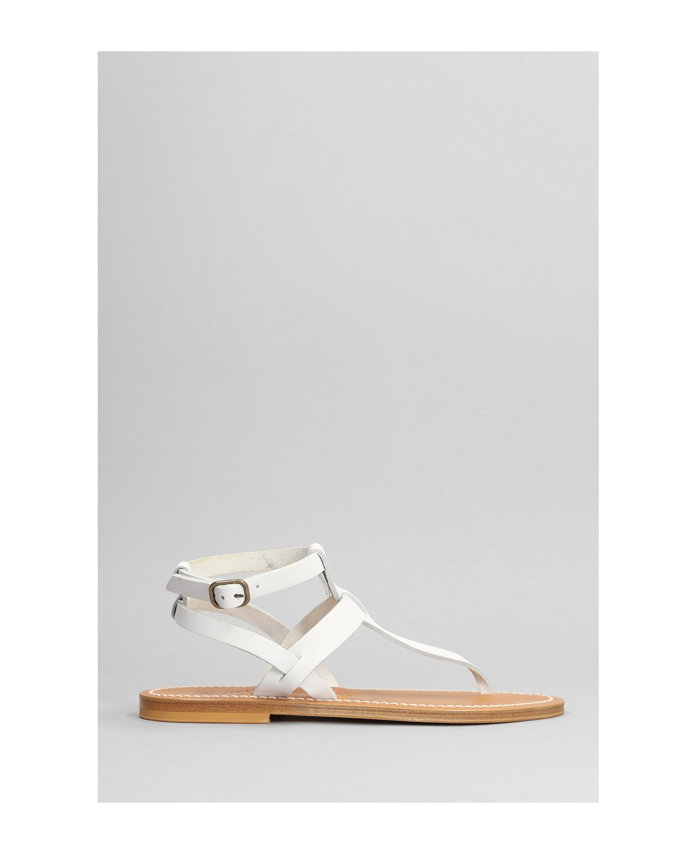 Kepri Flats in white leather, open toe, ankle strap, iconic logo, leather sole, 100% leather, Made in France