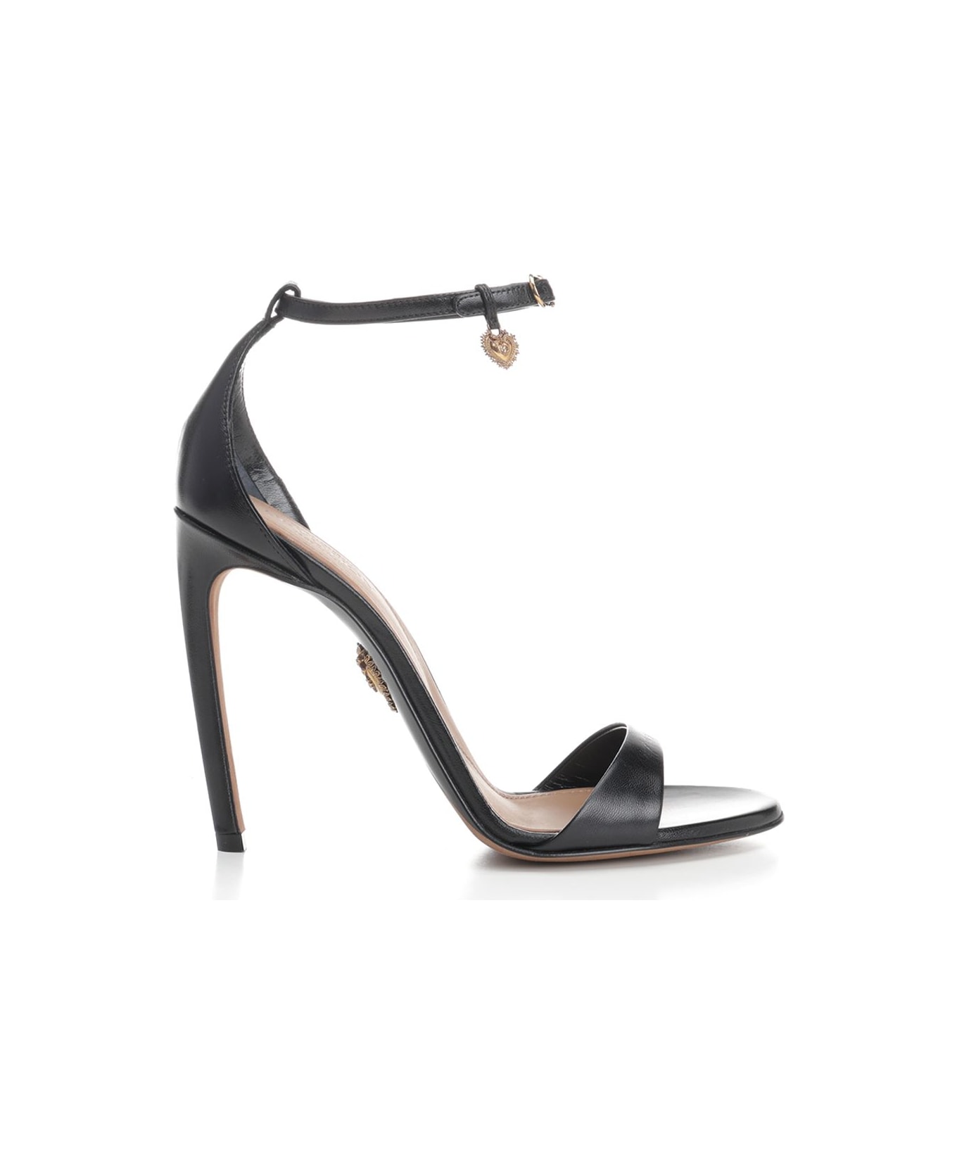 "Kira" high heel sandal in black patent leather from Dolce & Gabbana, with adjustable calfskin strap with logo buckle. Composition: 100%Capra