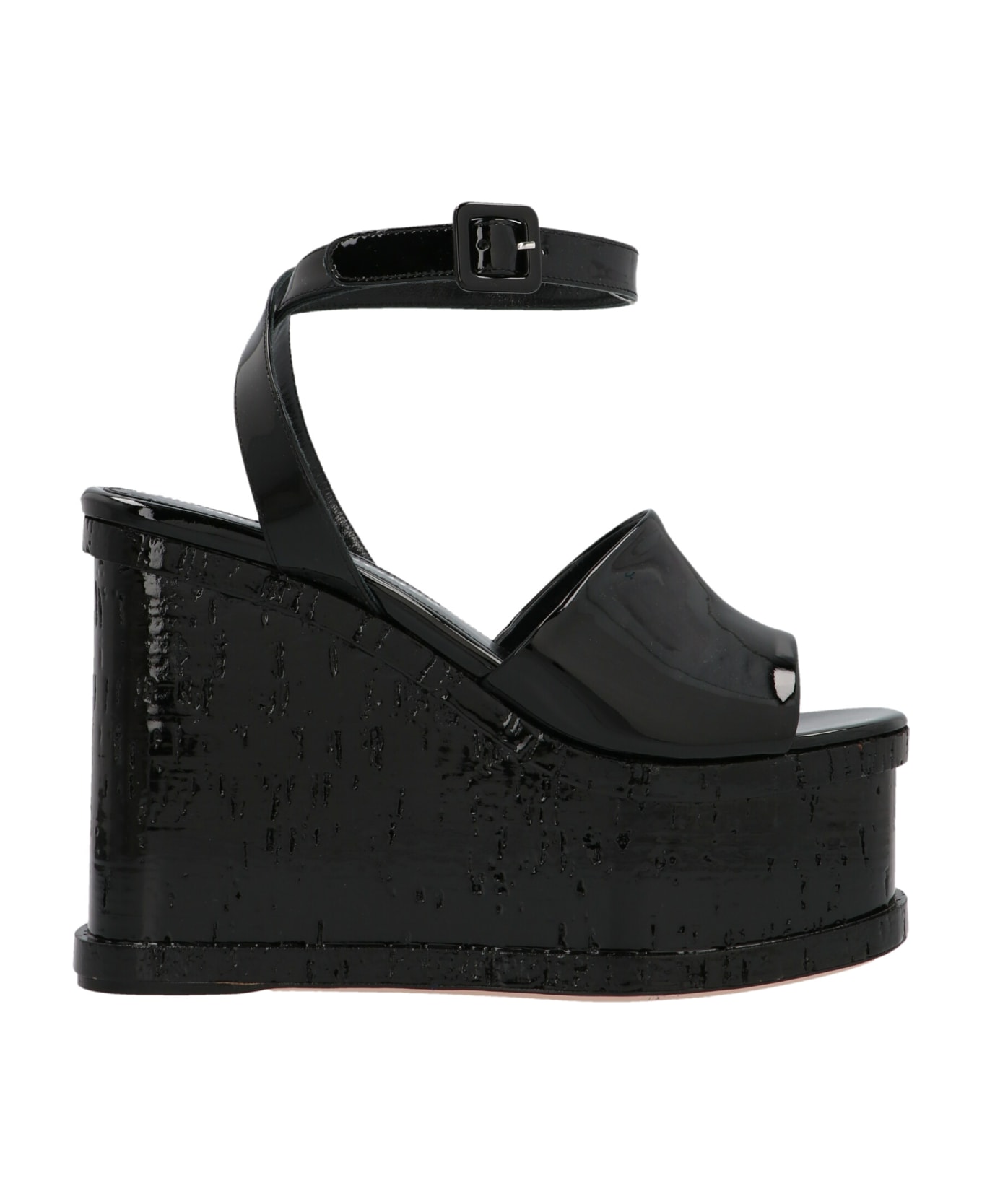 'Lacquer Doll' wedge with strap, in patent leather. Handcrafted product, any imperfections are intended as distinguishing features of the product.