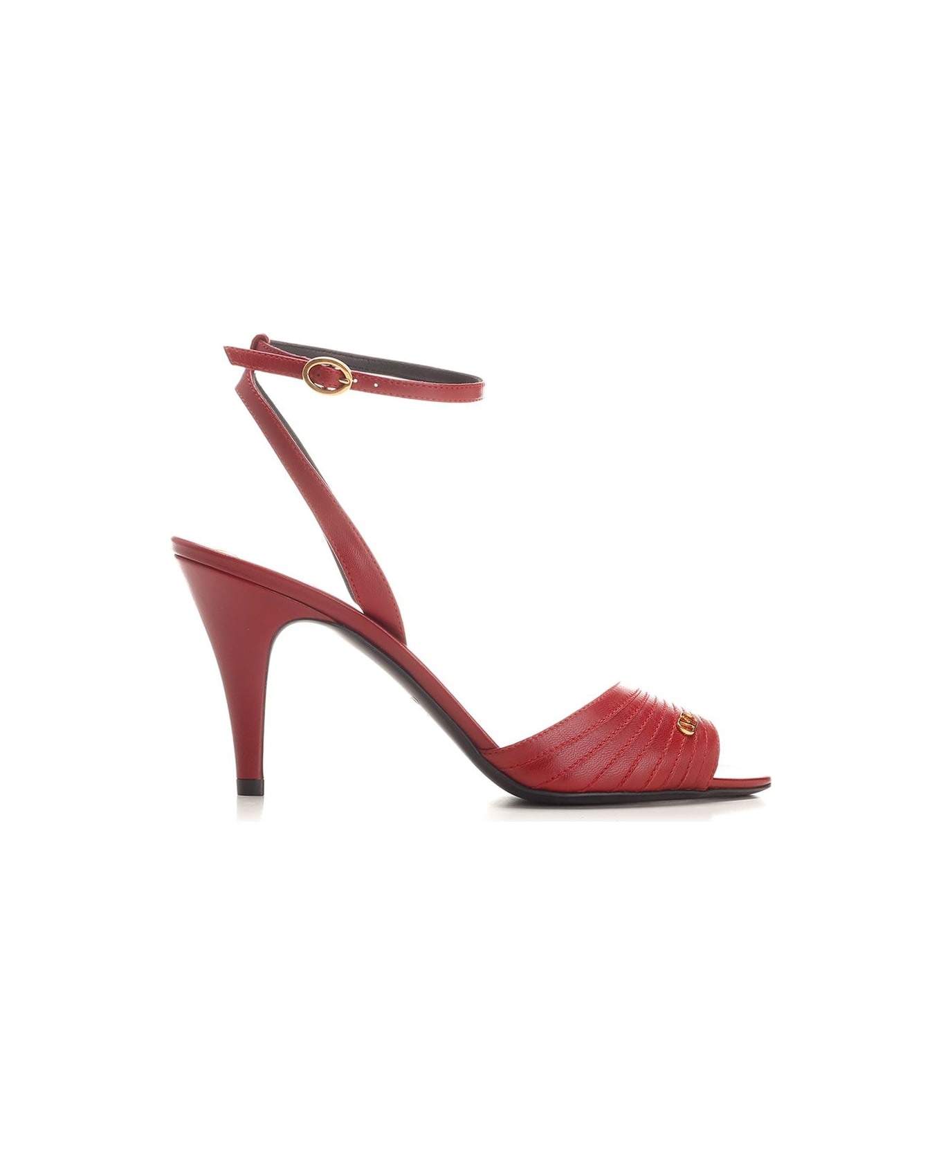 Red leather 'Lady Crush' sandals from Valentino Garavani, with cone heel and adjustable ankle strap. Composition: calf leather