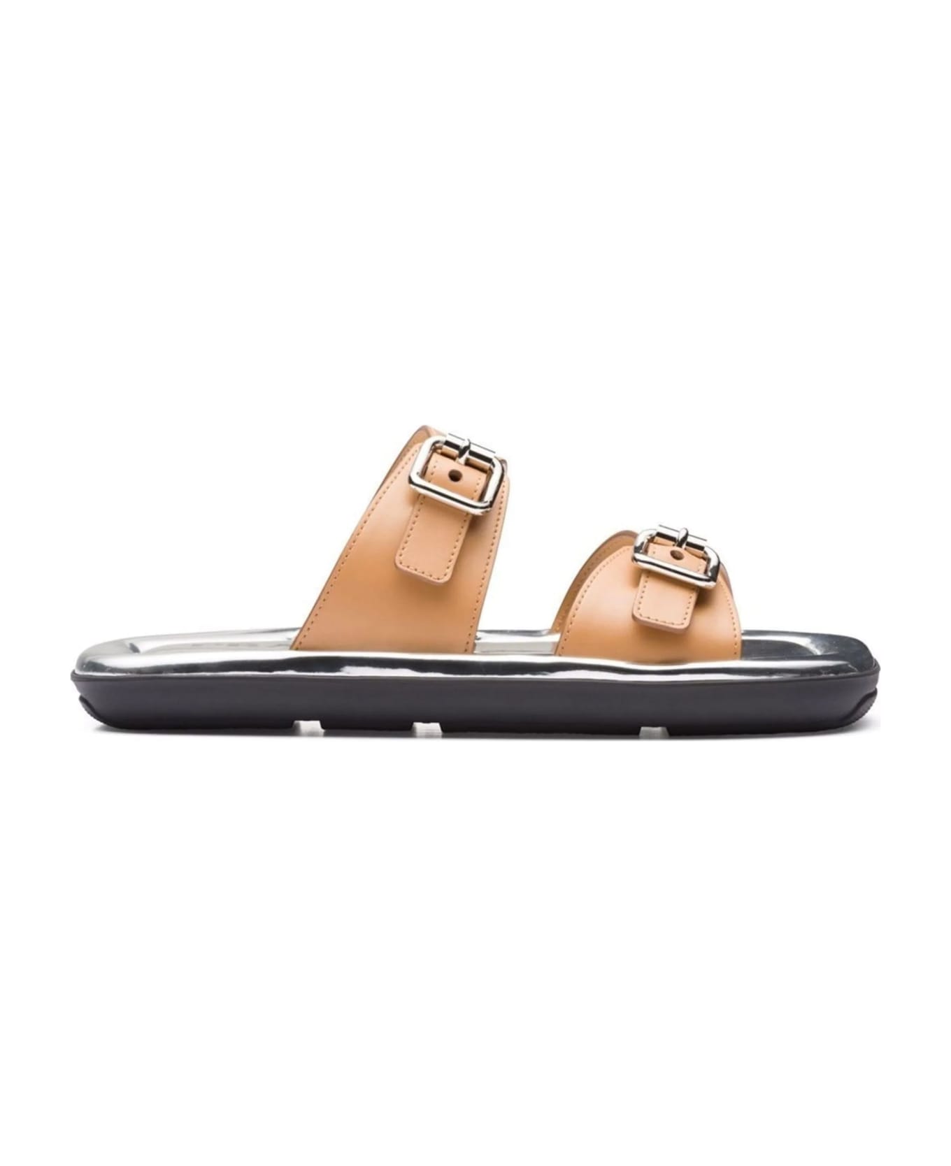 - Composition: 100% calf leather - Leather lining and insole - Rubber sole - Adjustable buckle fastening - Open toe - Branded insole