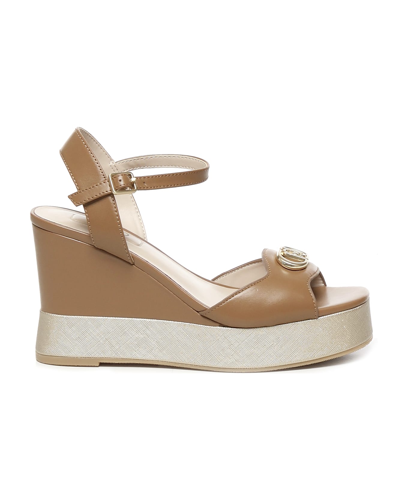-Leather strap -Laminated wedge detail -Adjustable strap closure -Monogram logo -Wedge height: 10 cm -Color: Nut