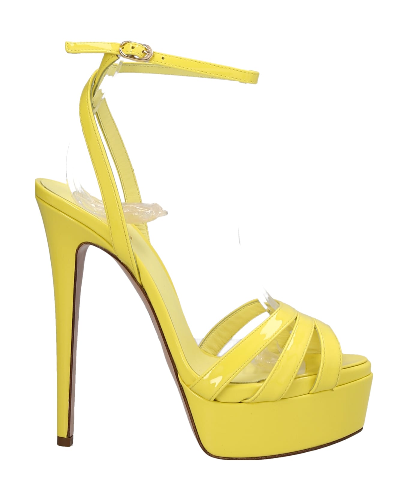 Lola' sandals in shiny leather with ankle straps and plateu.