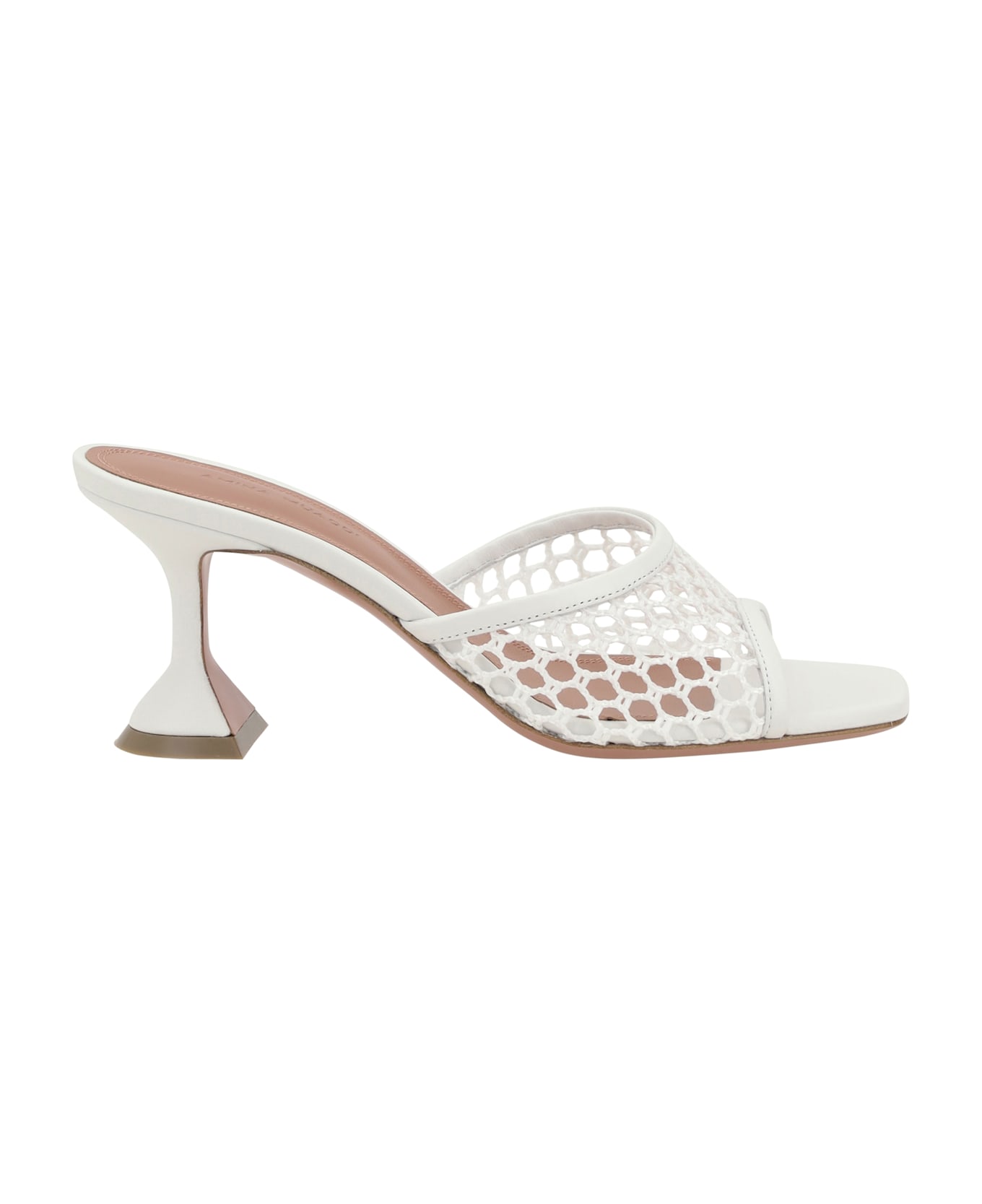 Amina muaddi's lupita sandals are a perfect blend of elegance and modernity. the sabot style offers a comfortable and sophisticated fit, while the perforated front strap adds a fresh and original touch to the design. the square toe gives a sharp and contemporary line, while the iconic geometric heel gives the shoe a distinctive and sculptural look. an elegant and bold model, ideal for those looking for a unique and sophisticated style.