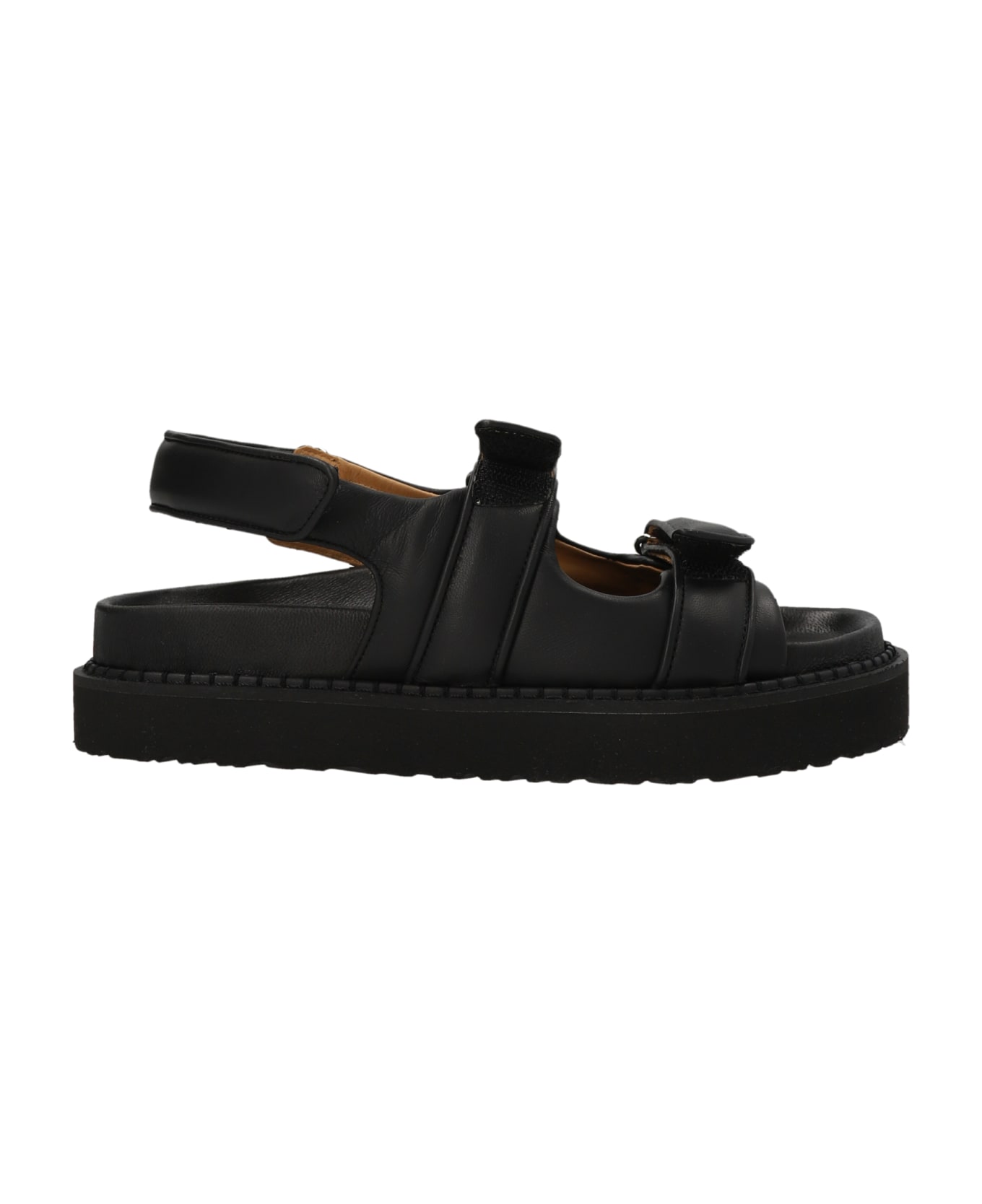 'Madee' leather sandals with two front bands, heel ties, over sole. Composition: