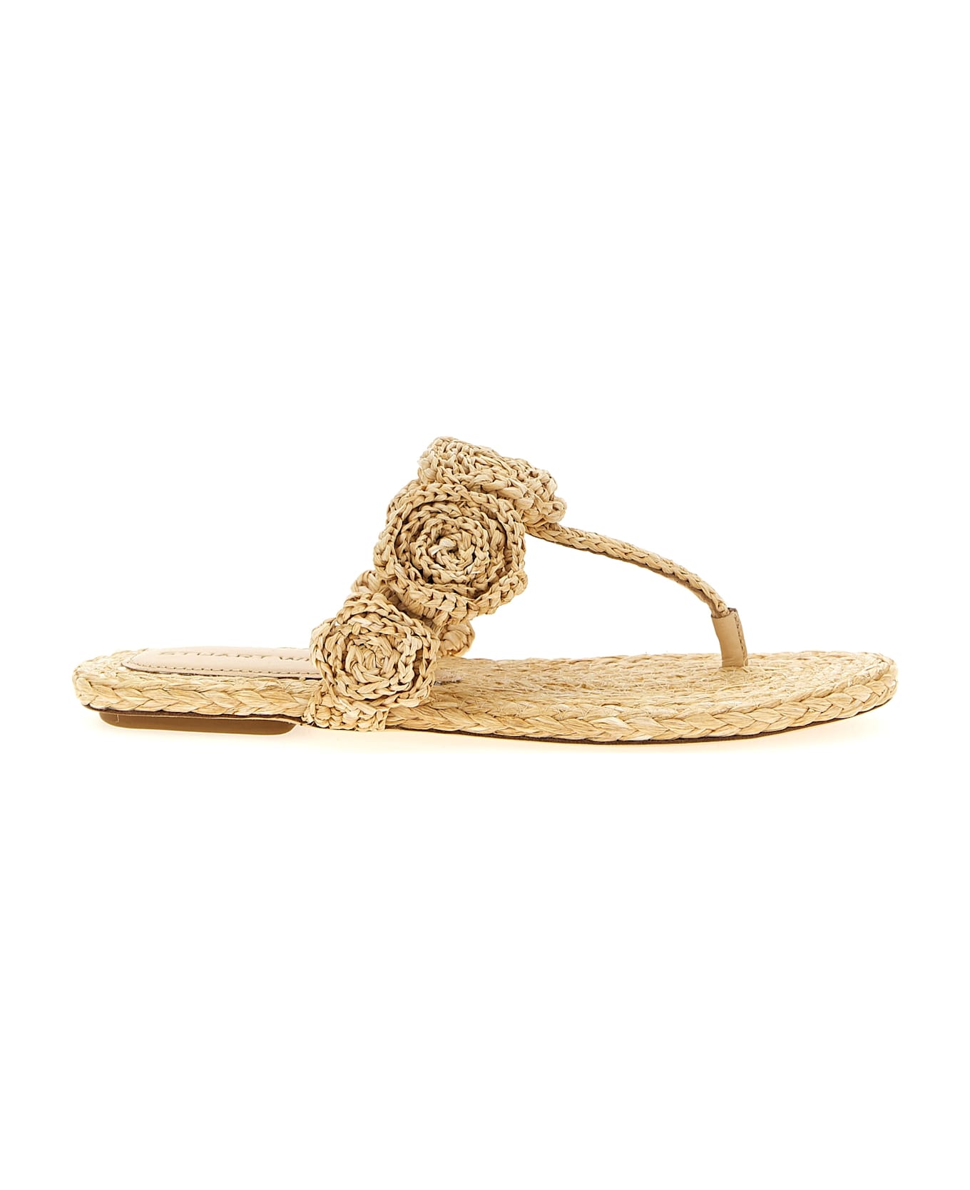 'Magnolia' raffia slides, flip-flops model, leather sole with rubber heel.
