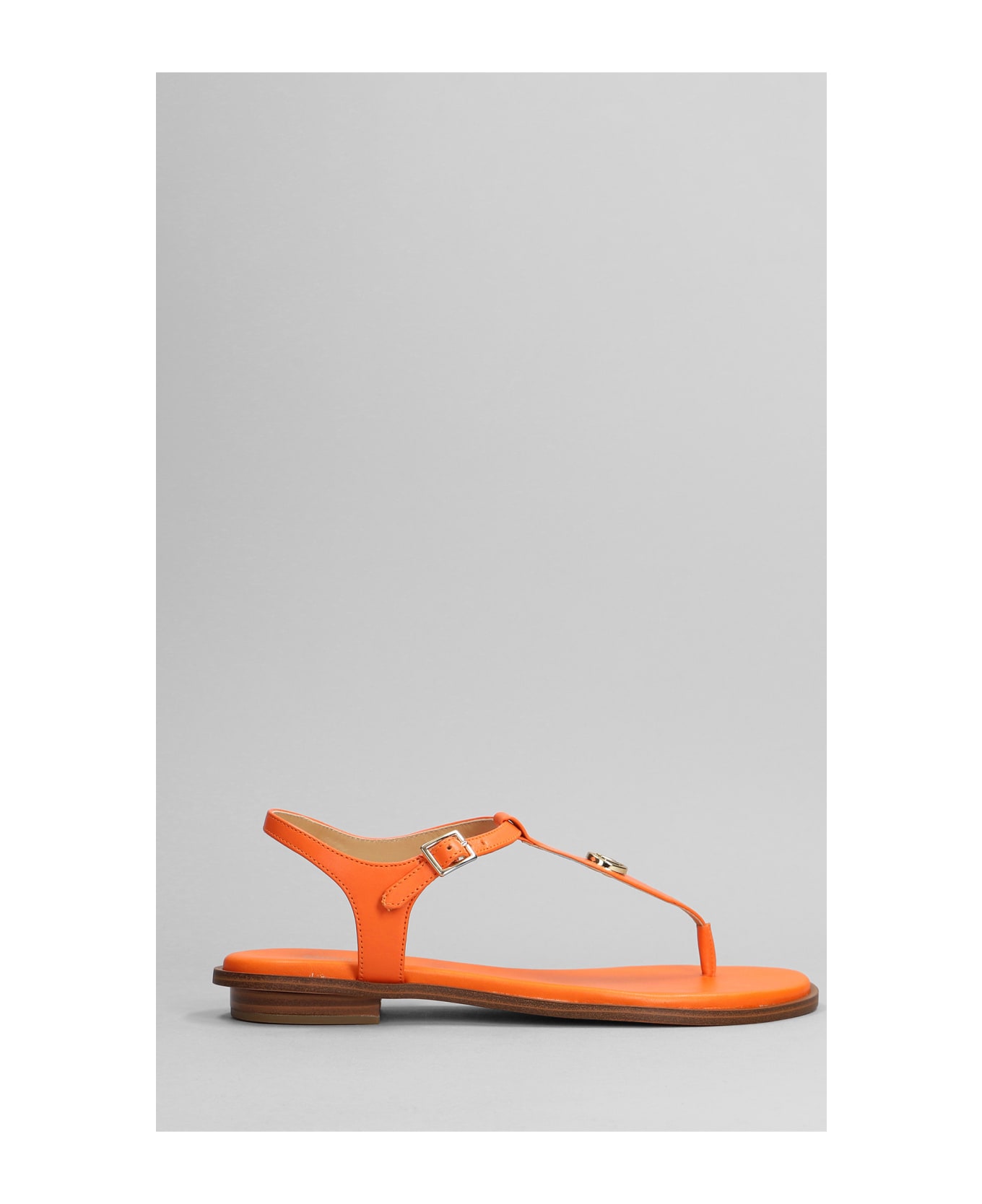 Mallory Thong Flats in orange leather, open toe, ankle strap, front logo, leather sole, 100% leather, Made in Vietnam