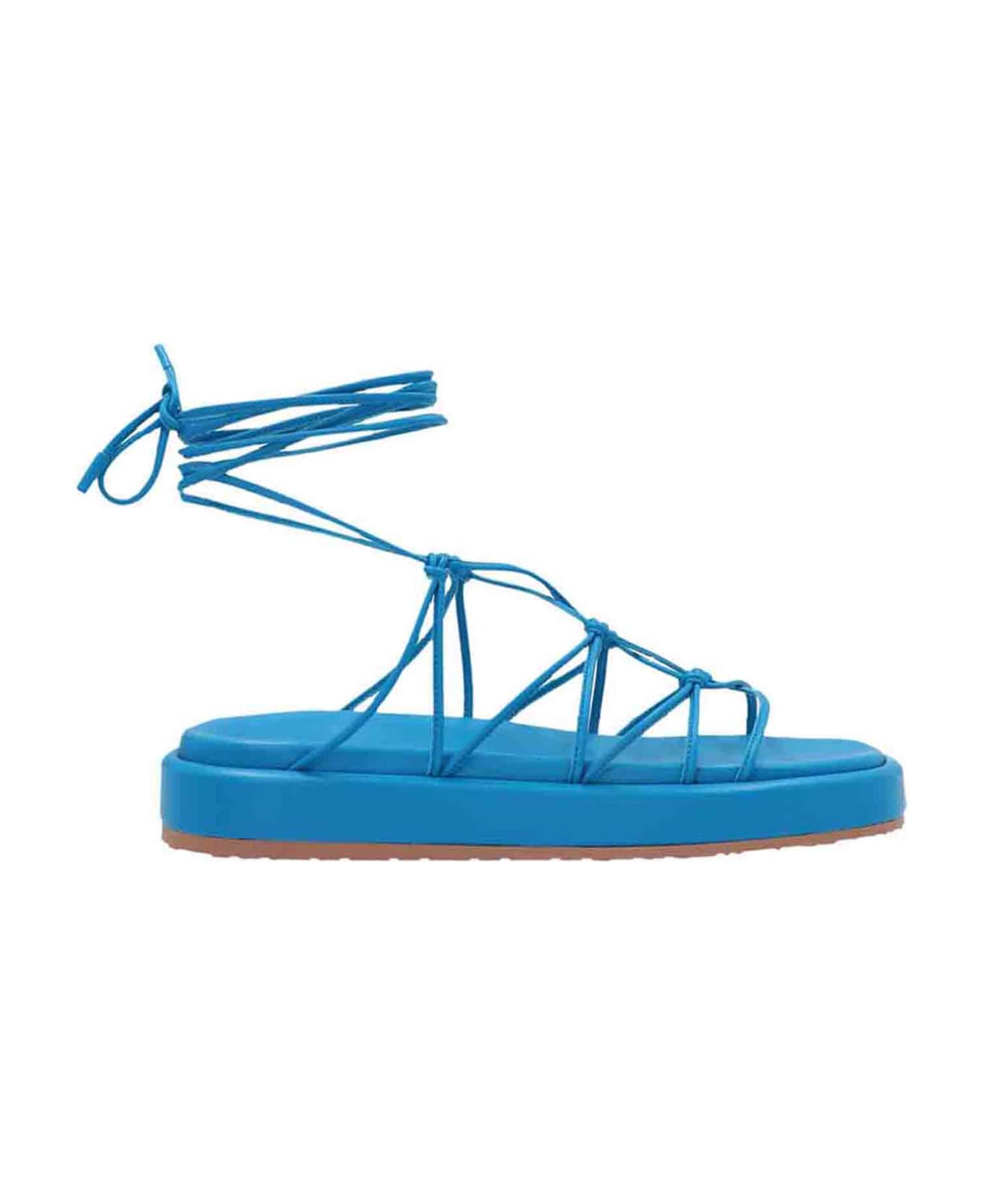 'Minas Flatform' nappa leather sandals with cable detail, ankle lace-up closure and thick sole.