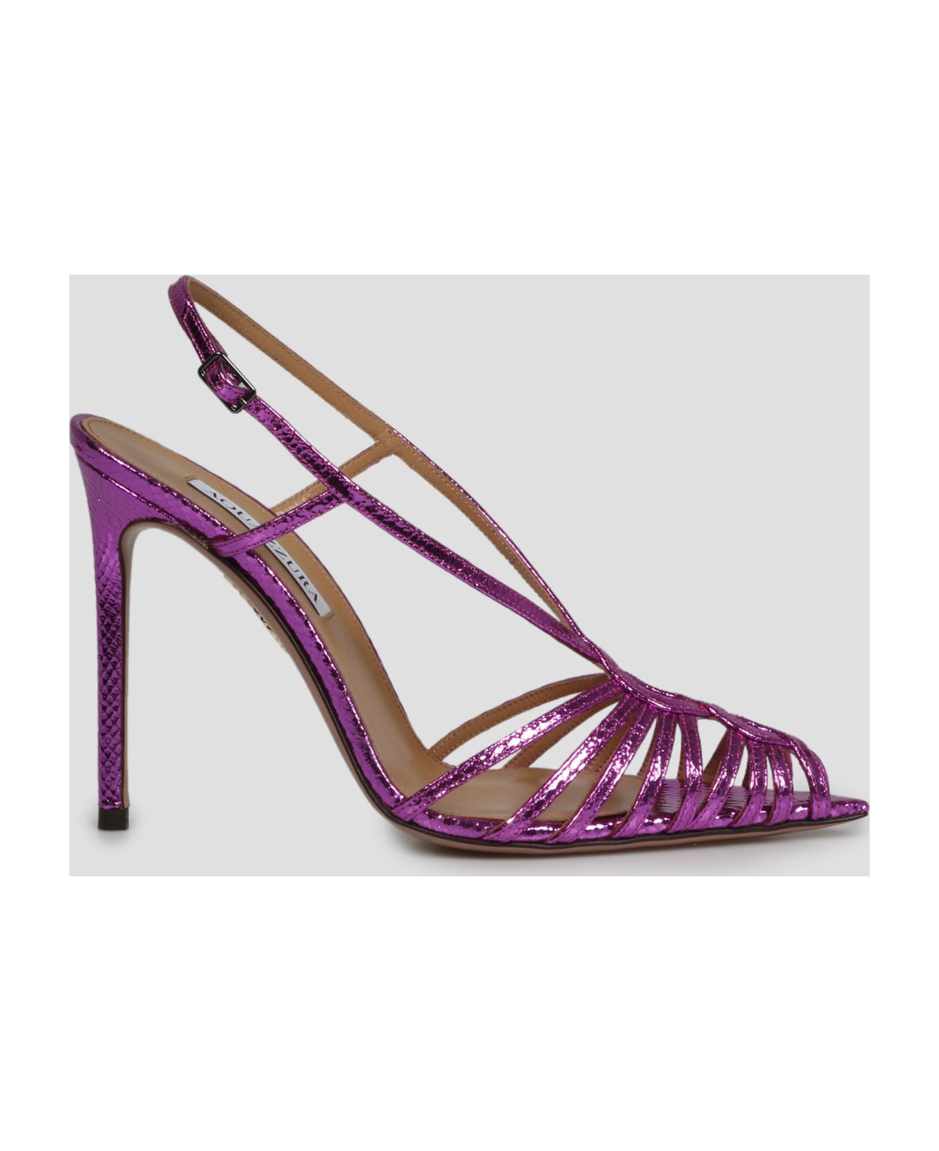 Aquazzurra Mistress sandal, in mini metal snake leather. - SS23