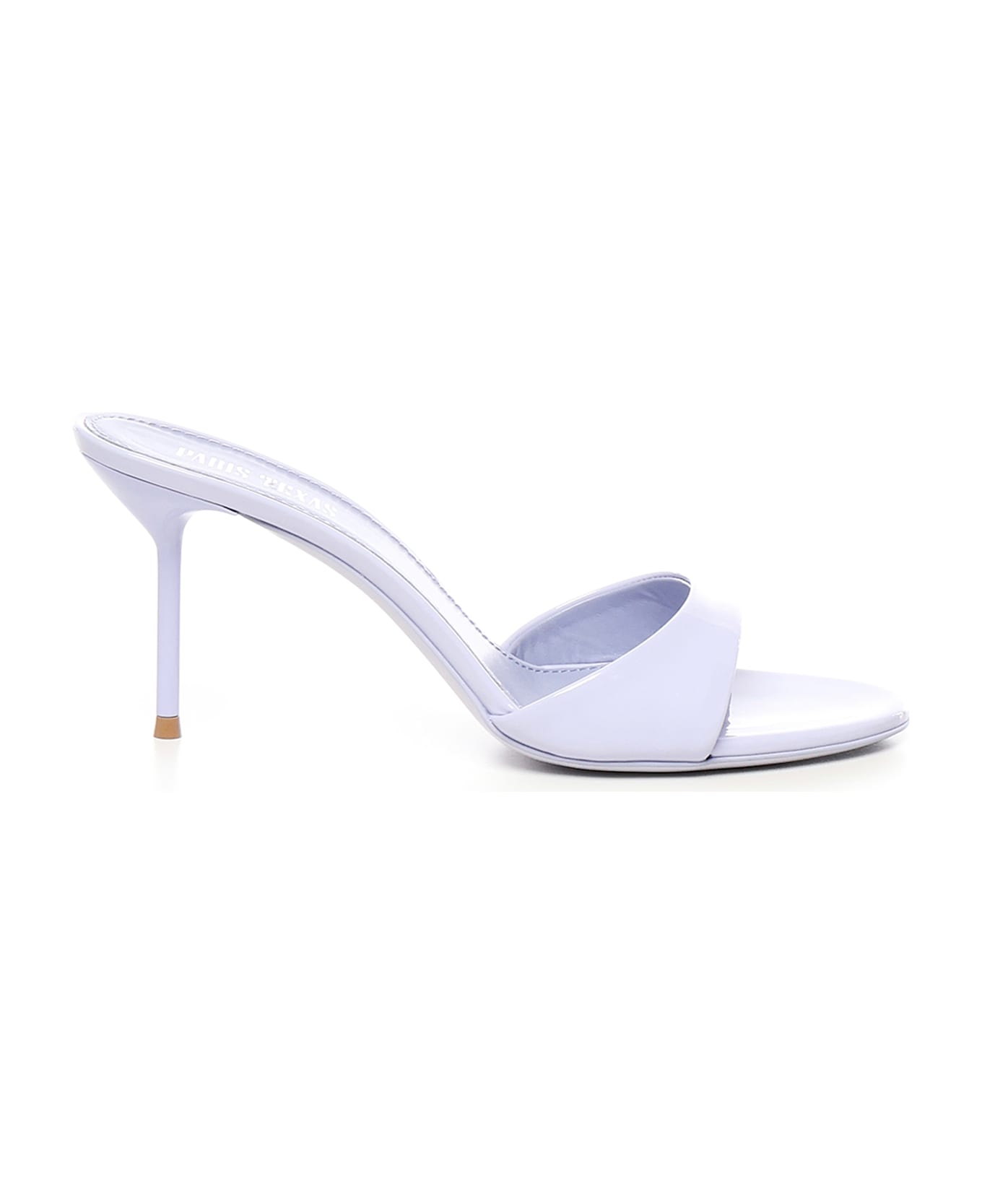 -Open-toe patent leather mules -70 mm high covered heel -Made in Italy -Color: Lilac Composition: 100% Calfskin