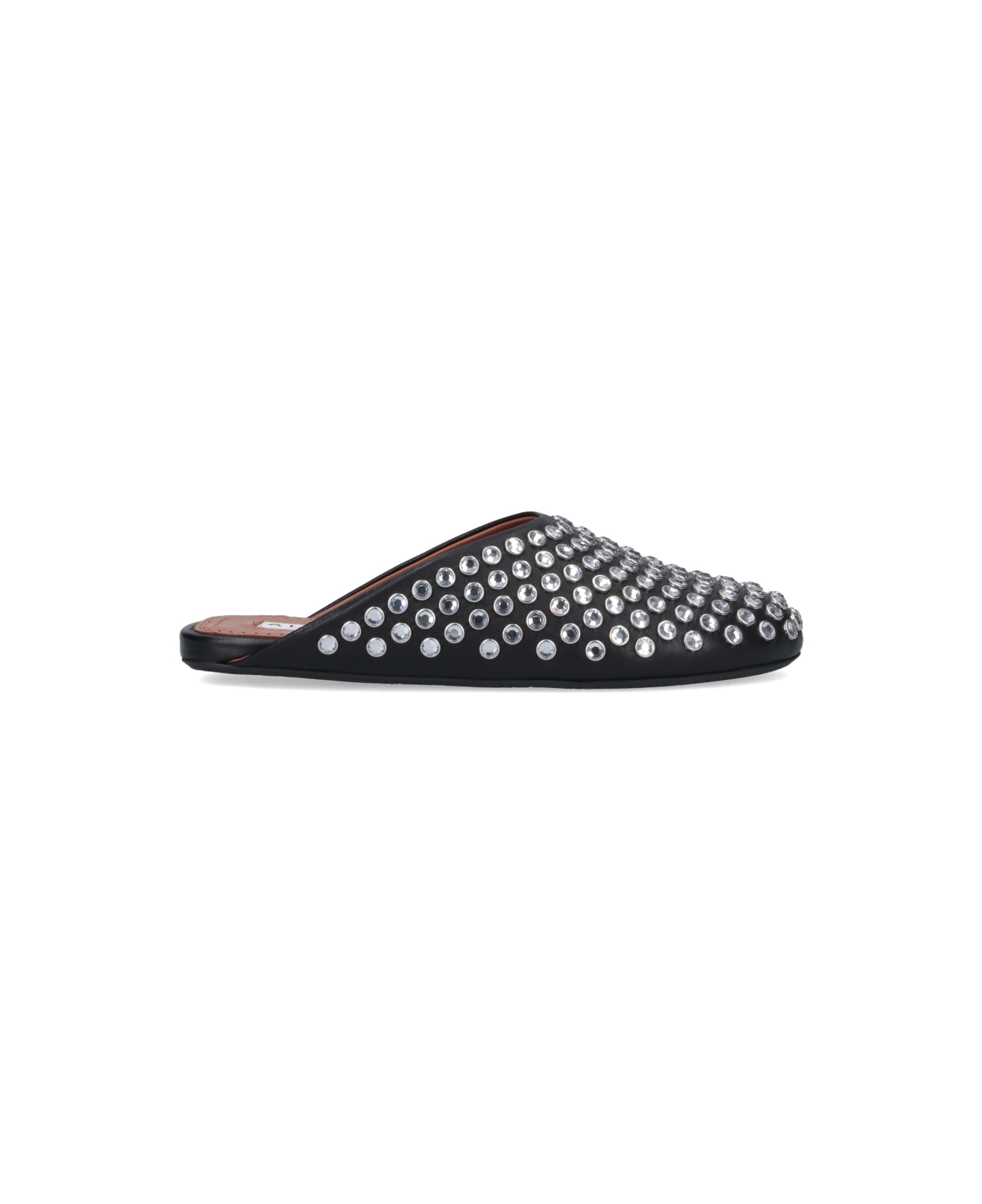 Alaïa Mules with rhinestones, black leather, all-over crystal detailing, round toe, slip-on design, rubber sole. Composition: 100% Lamb Leather