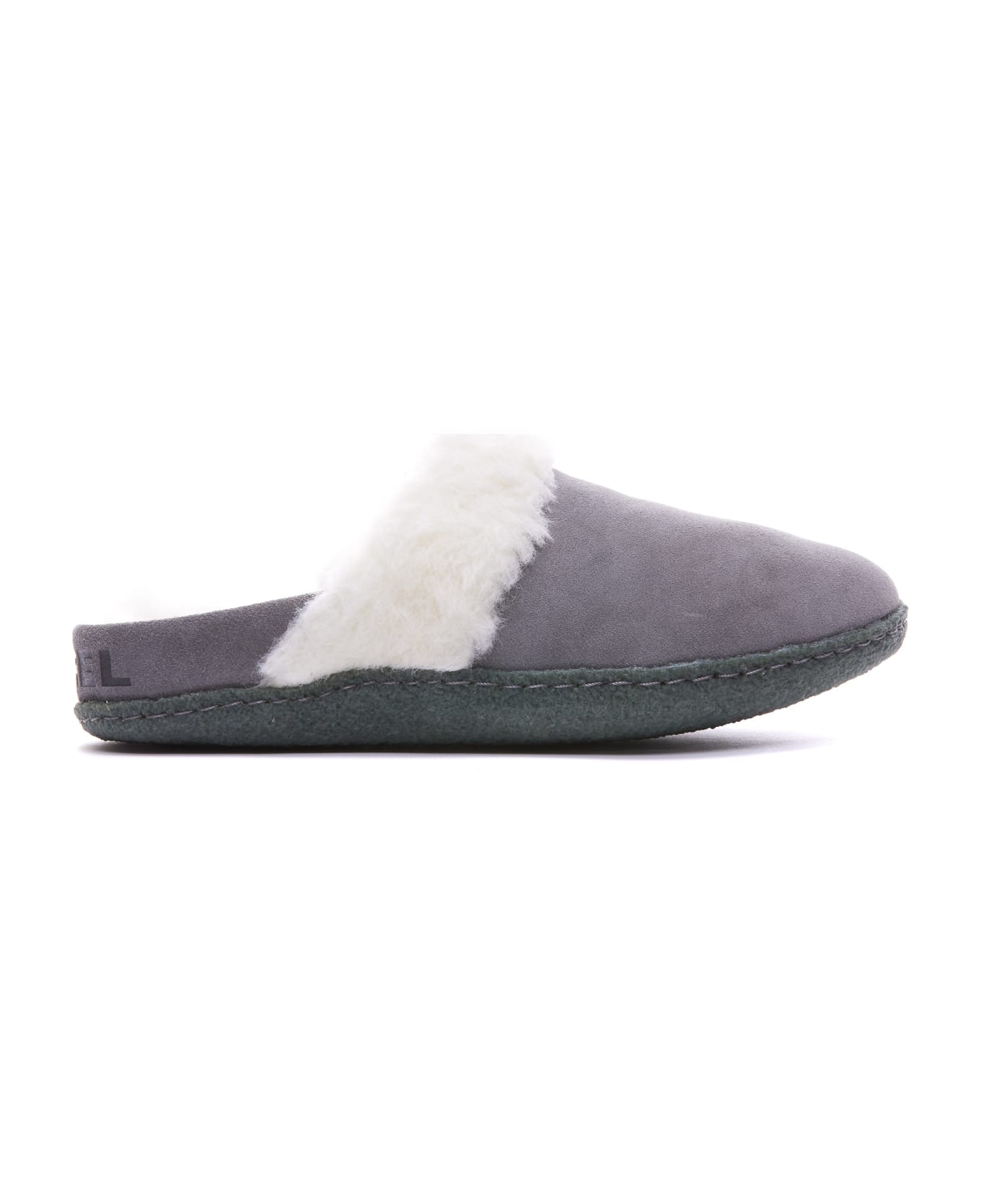 Sorel grey Nakiska slides, tone on tone logo on the back