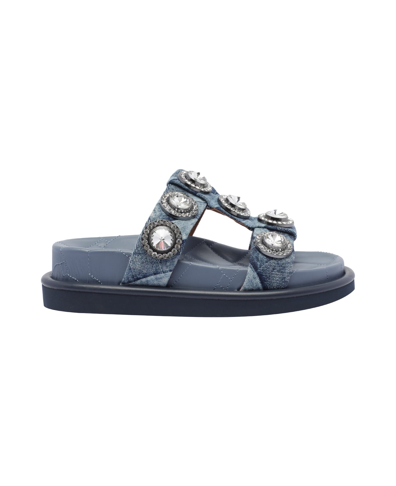 Kurt Geiger denim Orson Crystal sandals, round toe, crystals detail, fabric upper