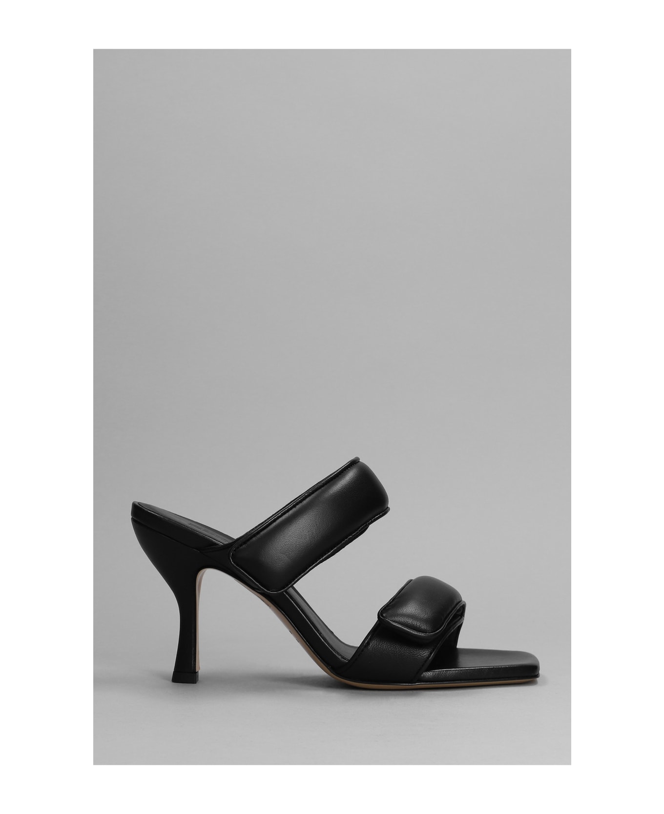 Perni 03 Sandals in black leather, double closure strap, square open toe, heel 95 mm, 100% leather, leather sole, Made in Italy