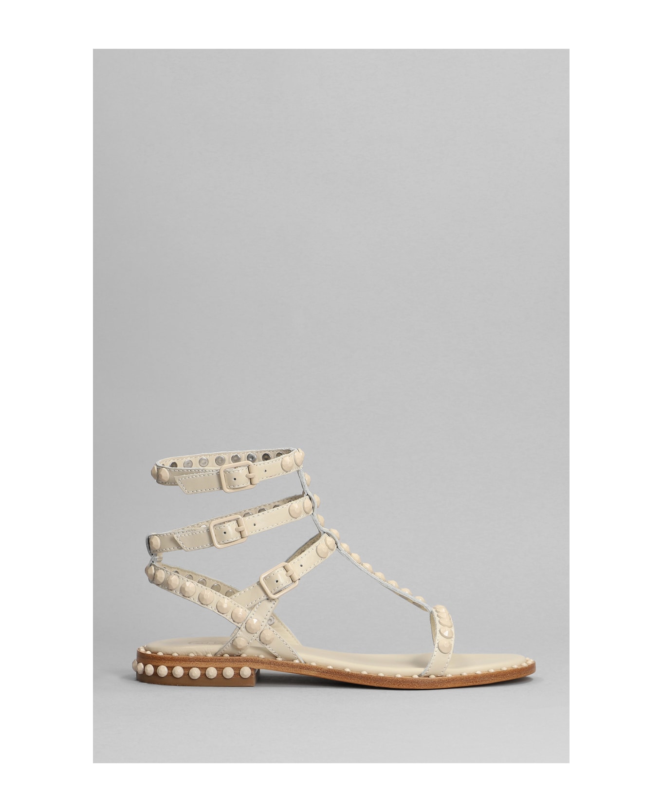 Play Bis Flats in beige leather, open toe, ankle straps, studs detail, leather sole, 100% leather, Made in Italy