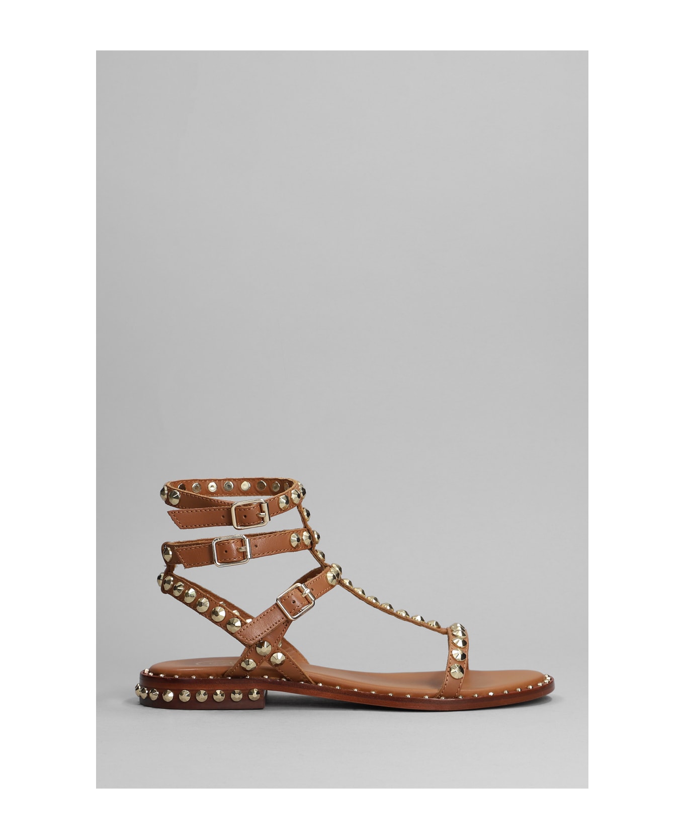 Play Flats in leather color leather, open toe, ankle straps, studs detail, leather sole, gold hardware, 100% leather, Made in Italy