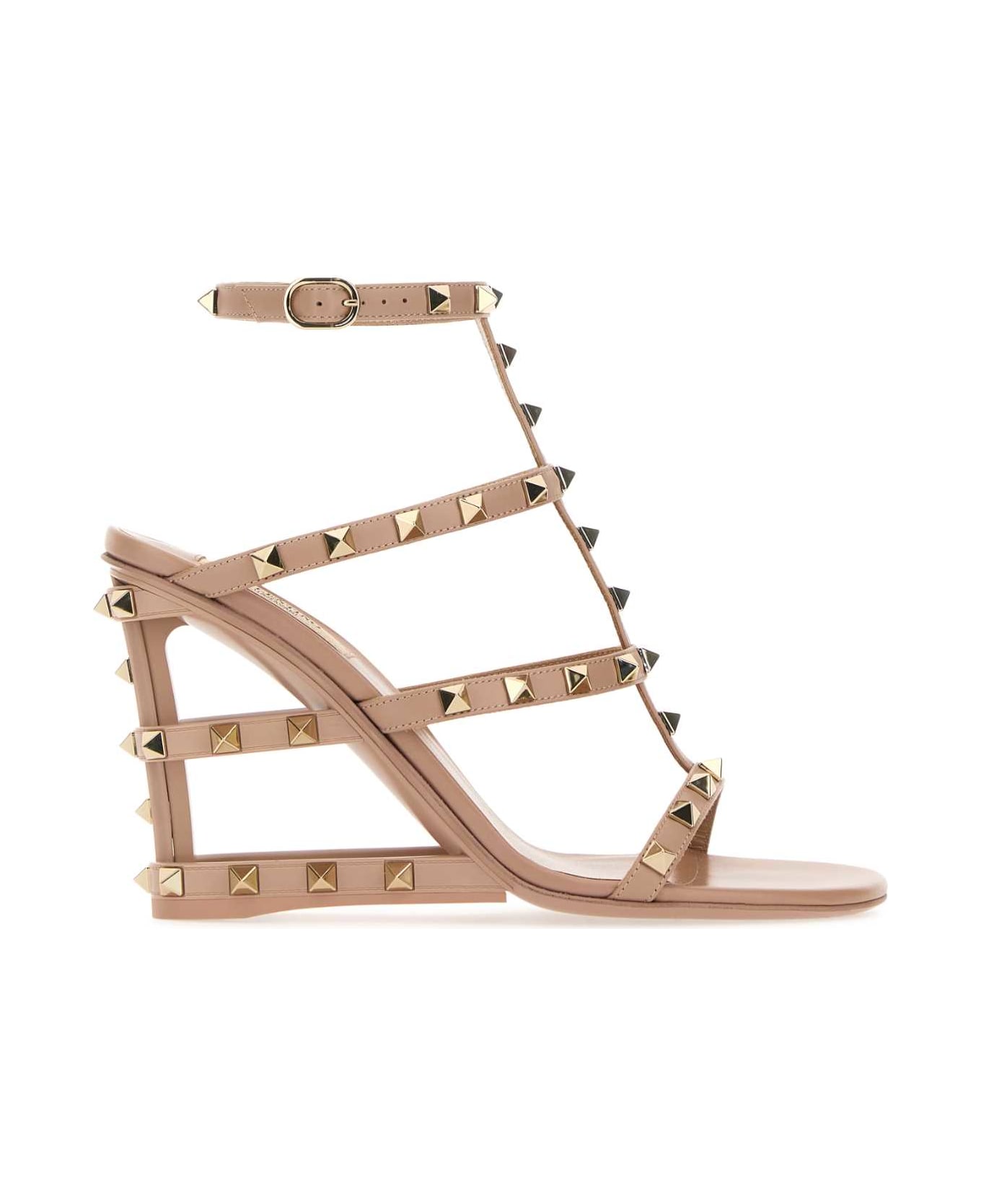 Powder Pink Leather Rockstud Sandals from Valentino Garavani