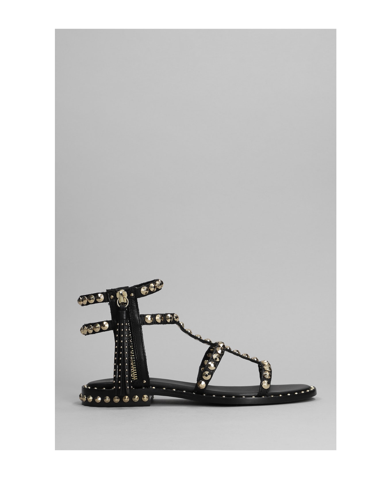 Power Flats in black leather, open toe, double ankle straps, studs detail, side zip closure, gold hardware, leather sole, 100% leather, Made in Italy