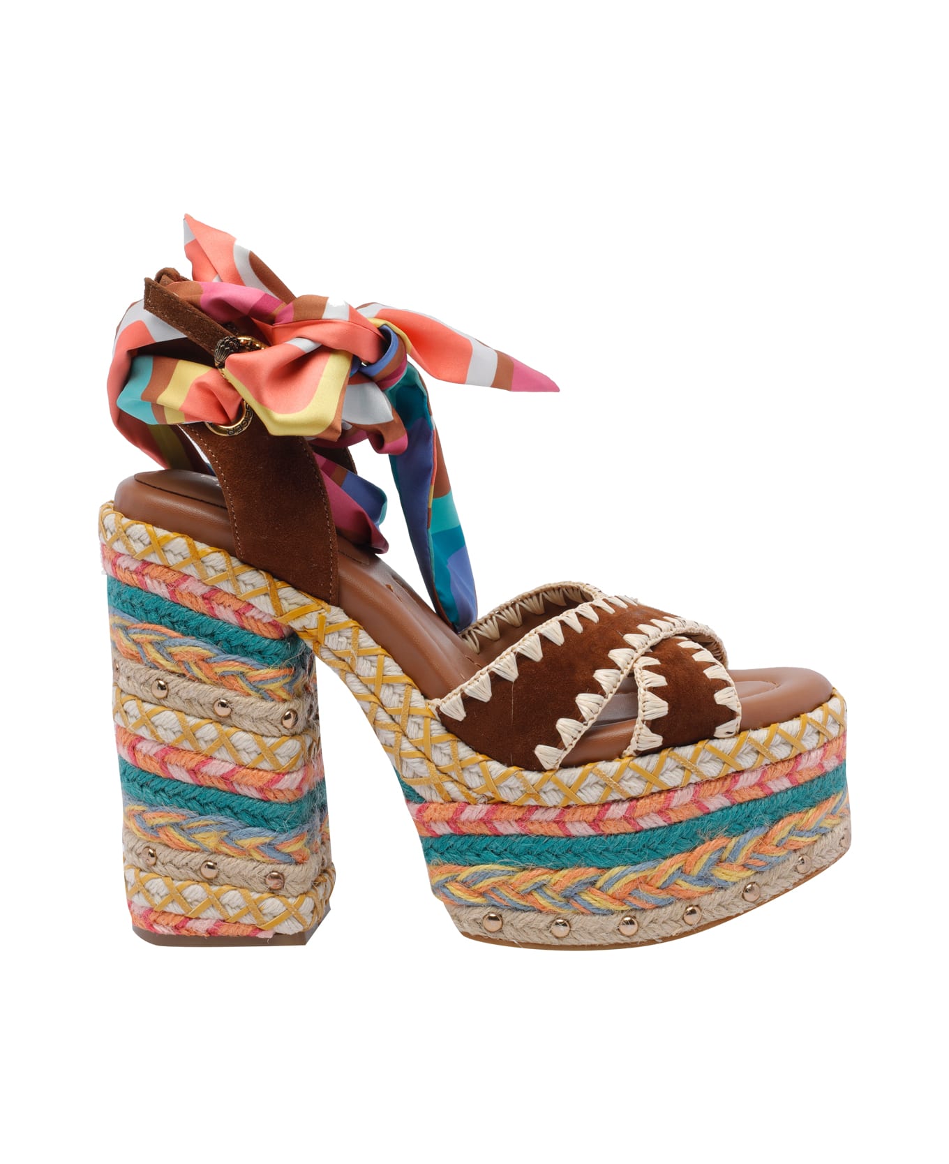 Kurt Geiger multicolor pump sandals, bow detail, buckle closure, suede and fabric upper, open squared toe, eu size Composition: 100% Calf Leather And Fabric/rubber Sole