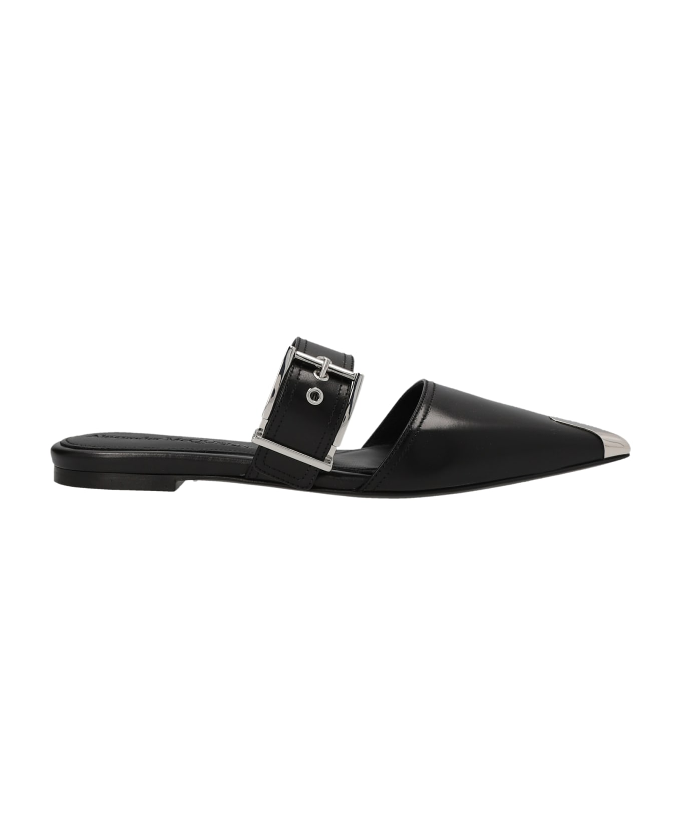 Punk' leather mules with strap detail with buckle, pointed toe and a silver metal toe cap. Composition: 100% calf leather (bos taurus)