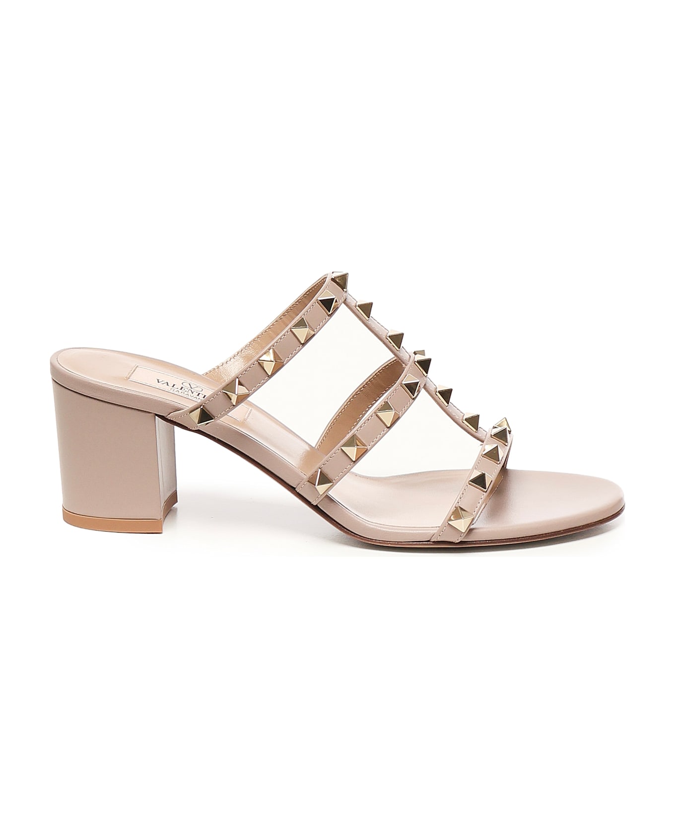 -Platinum finish studs -No closure -Round open toe -Leather sole -Leather insole -Block heel -Heel height: 60 mm -Made in Italy -Color: Blush