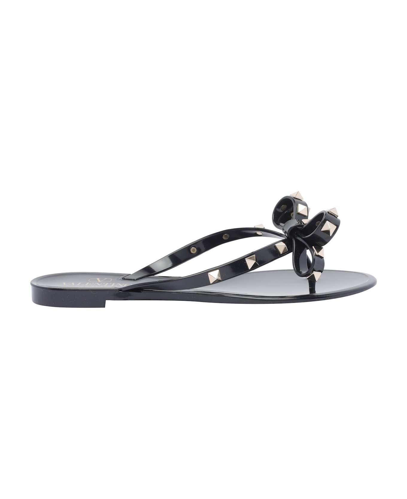 Valentino Garavani black Rockstud flip flops, round toe, studs, frontal bow detail, pvc upper Composition: 100% Rubber/rubber Sole