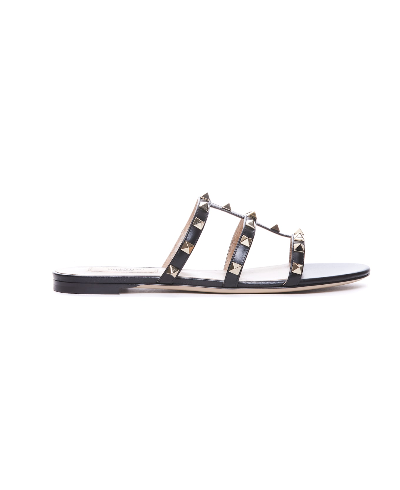 Valentino Garavani black Rockstud slides, round toe, studs detail Composition: 100% Calf Leather/leather Sole