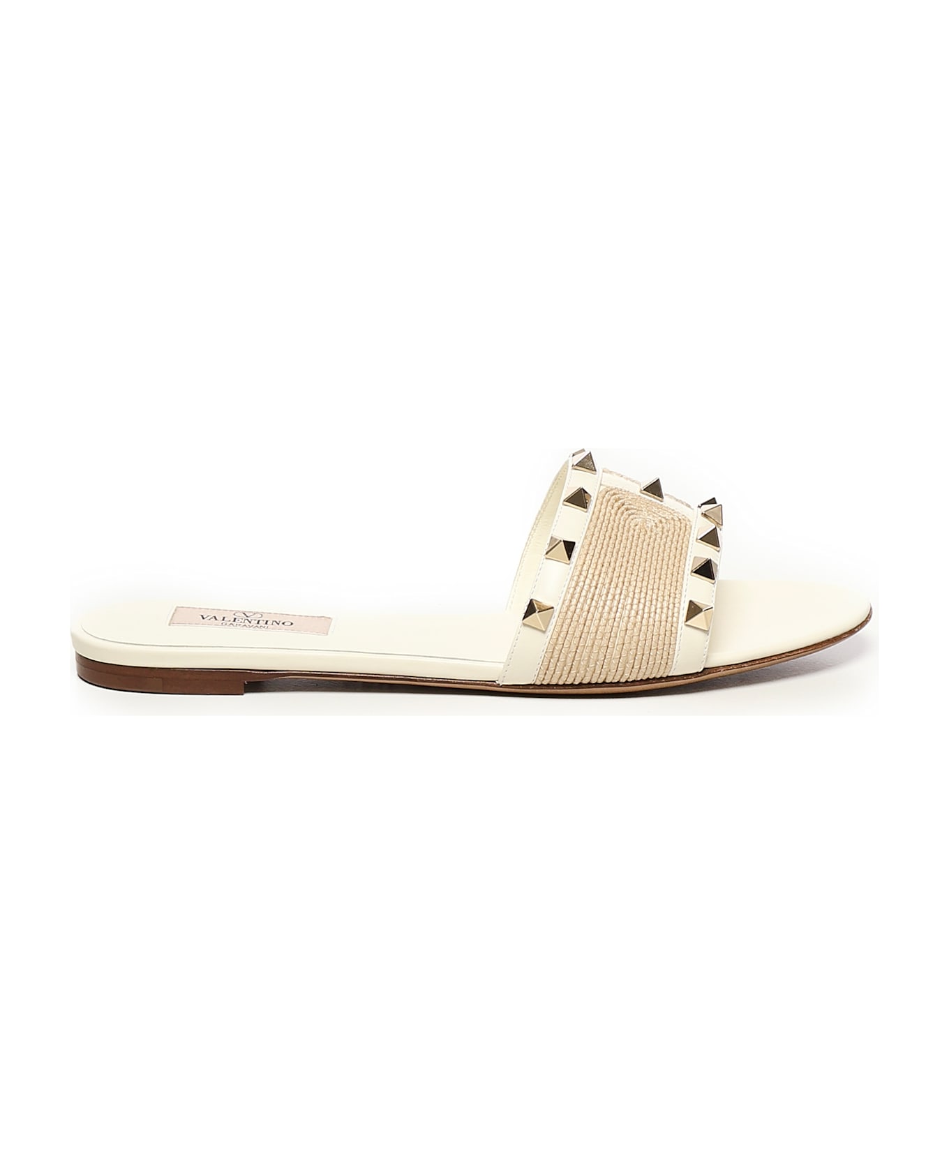 -Almond open toe -Leather sole -Studded band -Made in Italy -Color: Ivory