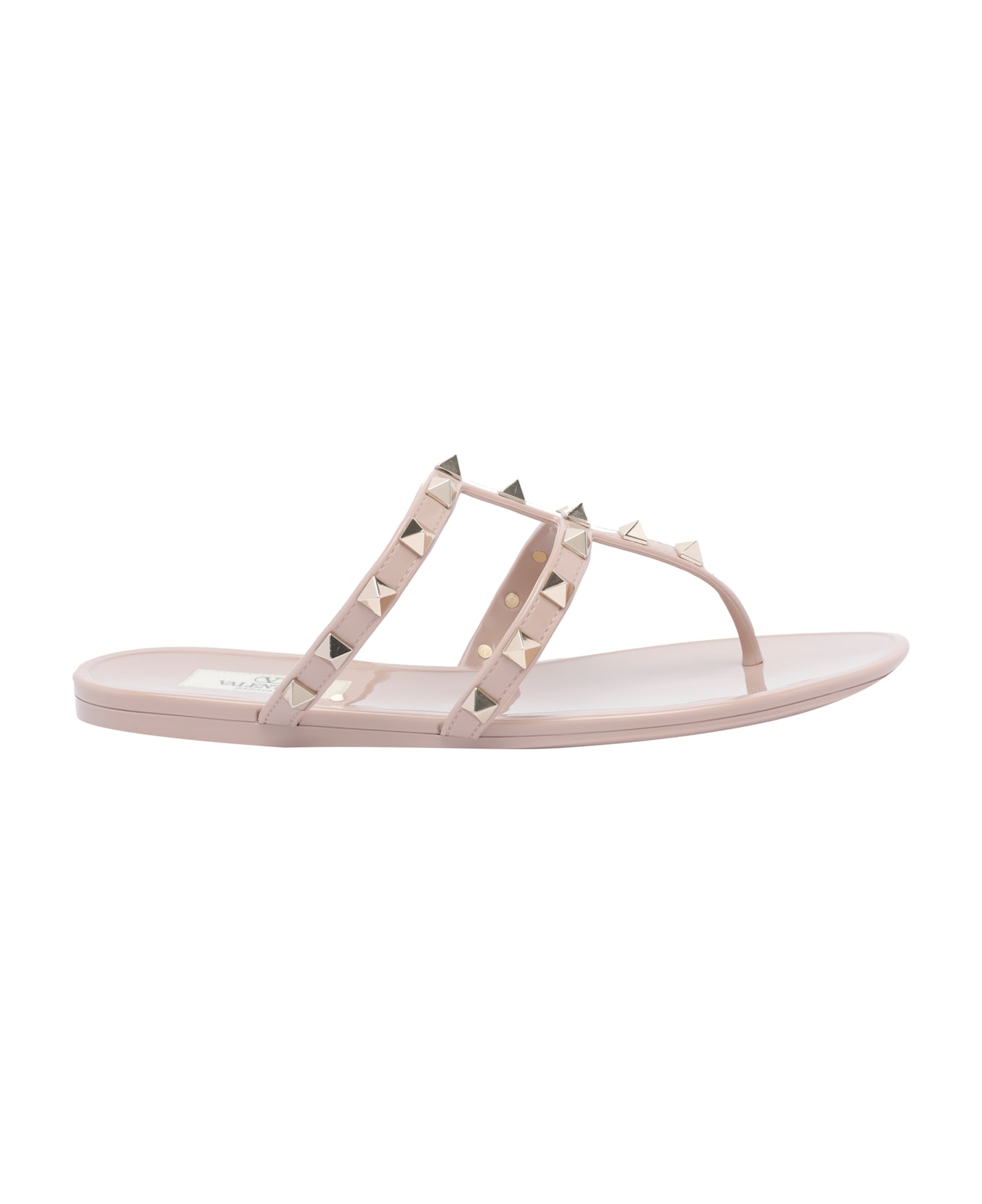 Valentino Garavani poudre Rockstud flat rubber sandal, leather upper, studs logo details, open round toe Composition: 100% Rubber/rubber Sole