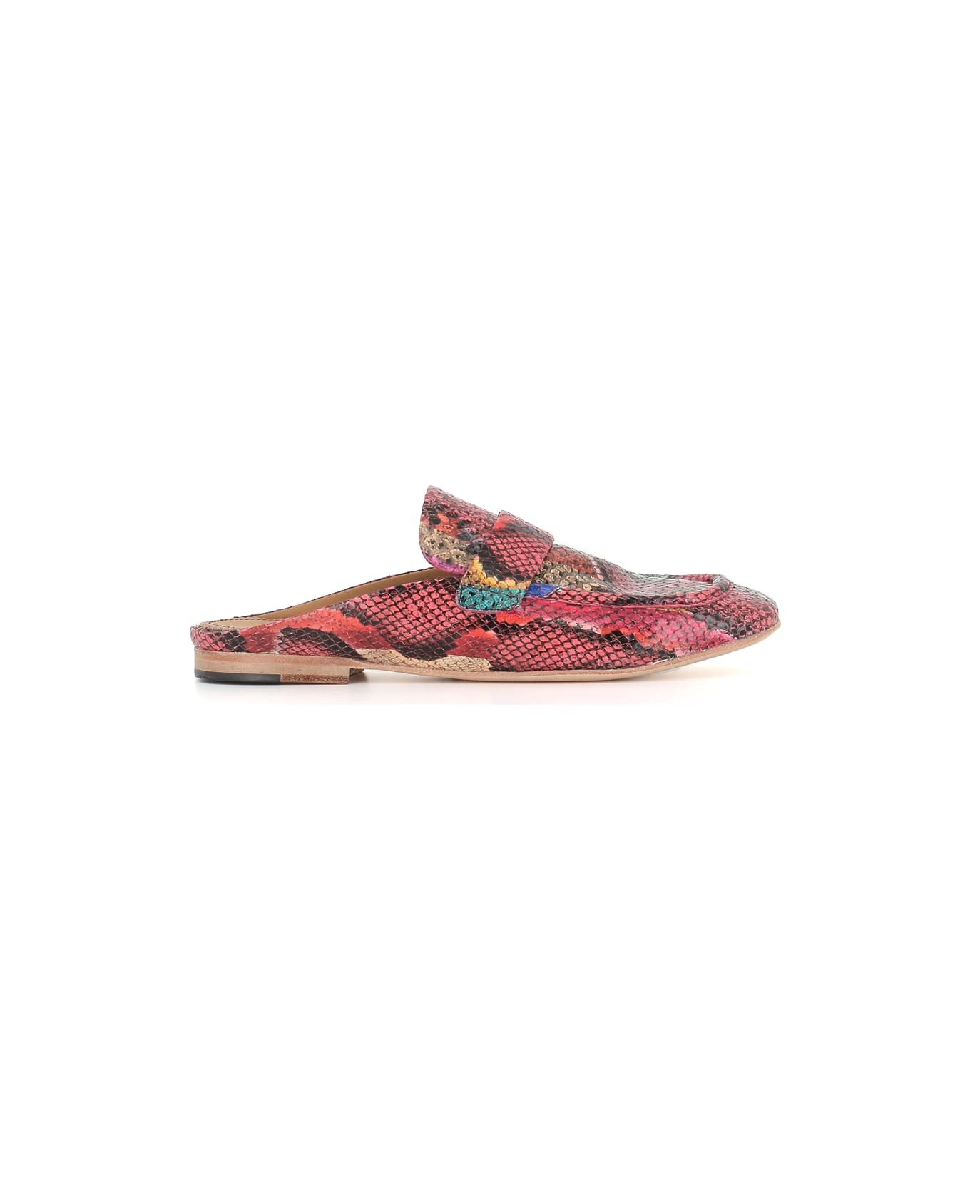 Multicolored python-effect printed leather Sabot from Sturlini, featuring by a square toe. Lined interior. Flexible leather fund. Heel: 2 cm
