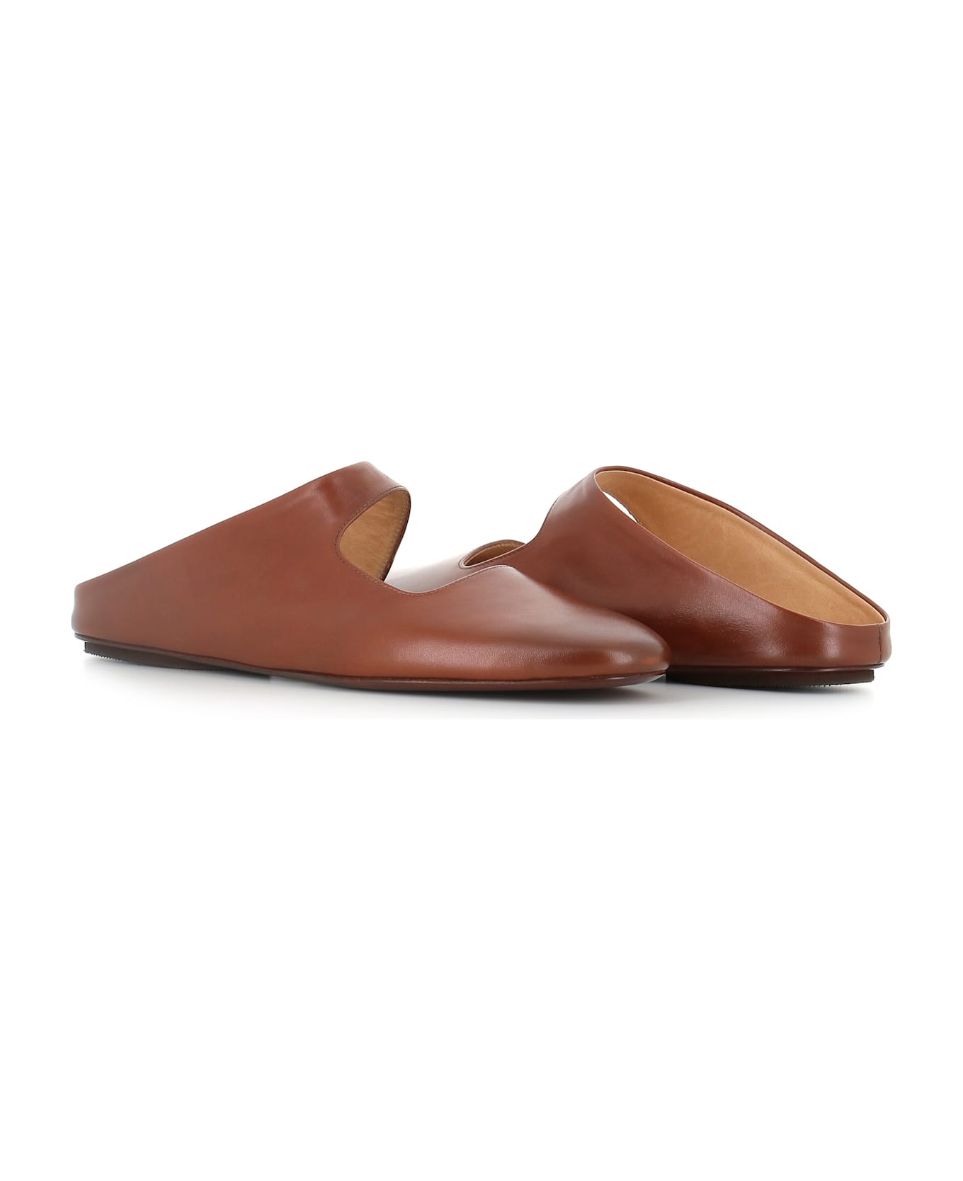 Cognac soft leather women's sabot flat by Marsell. Lined interior. Leather sole. Heel: 0,5 cm