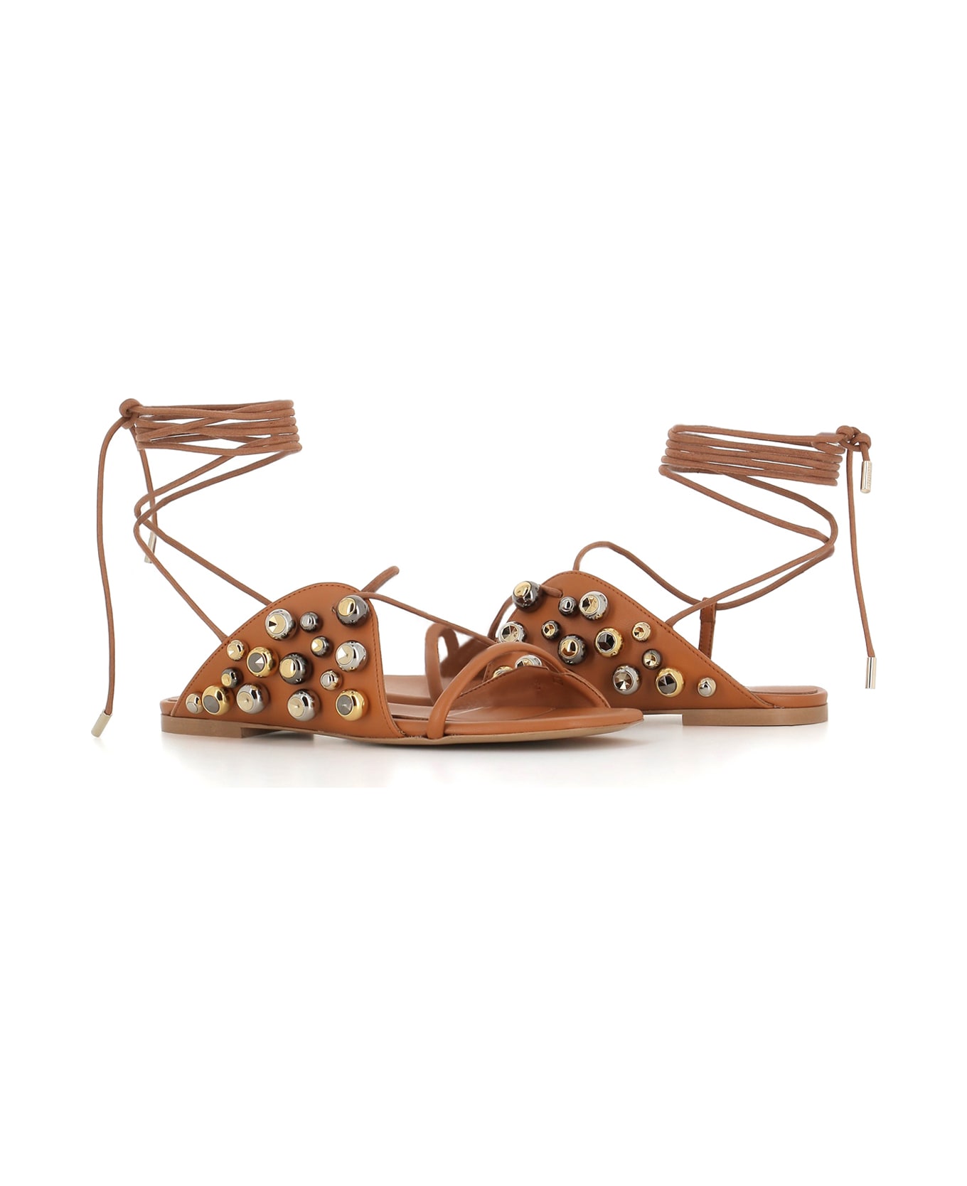 Tan artificial leather Sandal from Stella McCartney featuring spherical studs, a single strap at the front and laces to tie around the ankle. Lined interior. Leather sole. Heel: 1 cm Composition: Artificial Leather