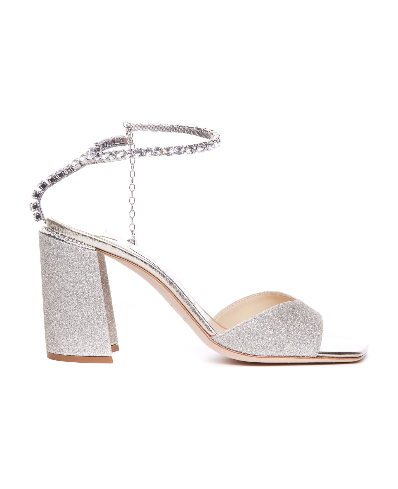 Jimmy Choo silver Saeda pump sandals, all over glitter details, open squared toe, crystals details Composition: 100% Fabric/ Leather Sole