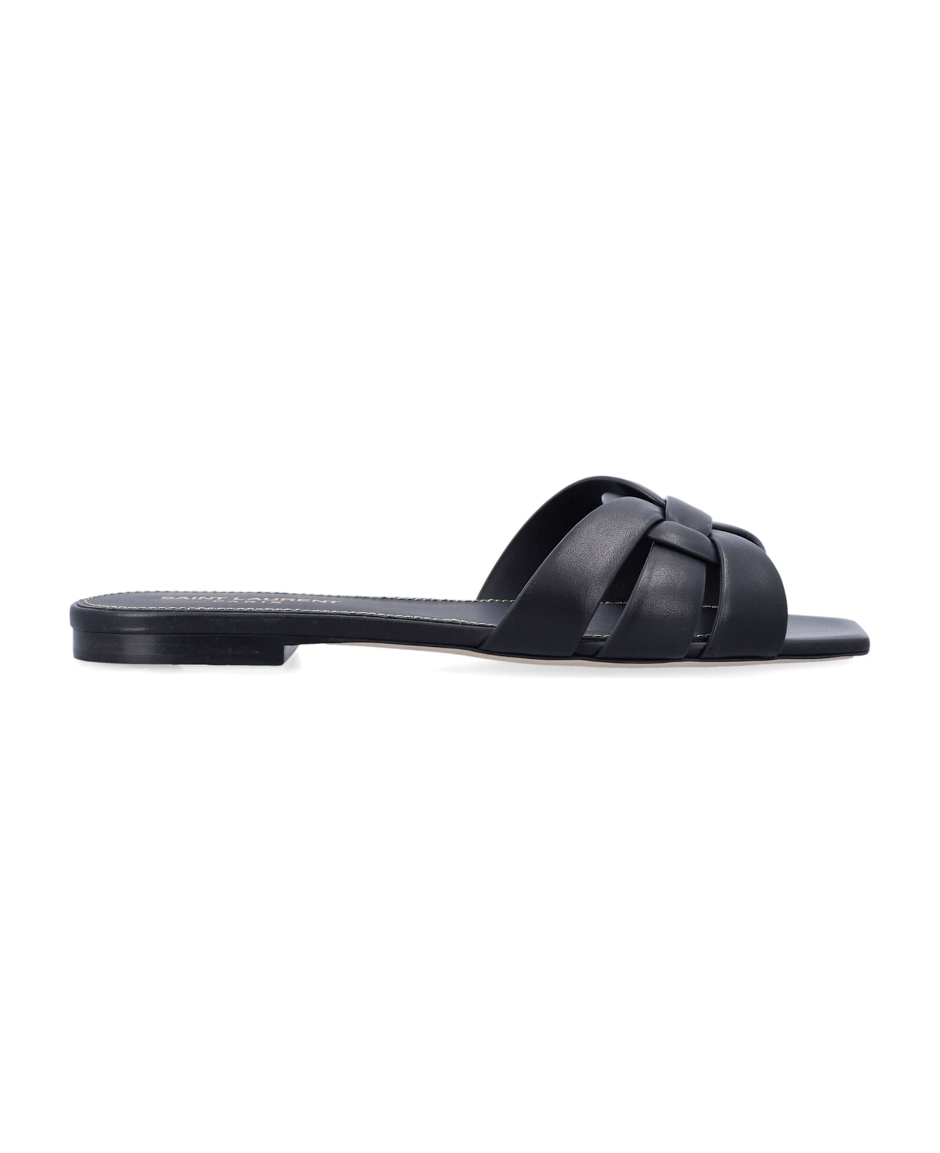 The Saint Laurent Leather Tribute Sandals Combine Minimalist Elegance With Summer Comfort. Featuring An Open Square Toe, Interwoven Straps, And A Flat Leather Sole, They Are Perfect For Sophisticated Or Everyday Outfits With Style And Ease. Open Square Toe Interwoven Leather Straps Flat Leather Sole Branded Insole