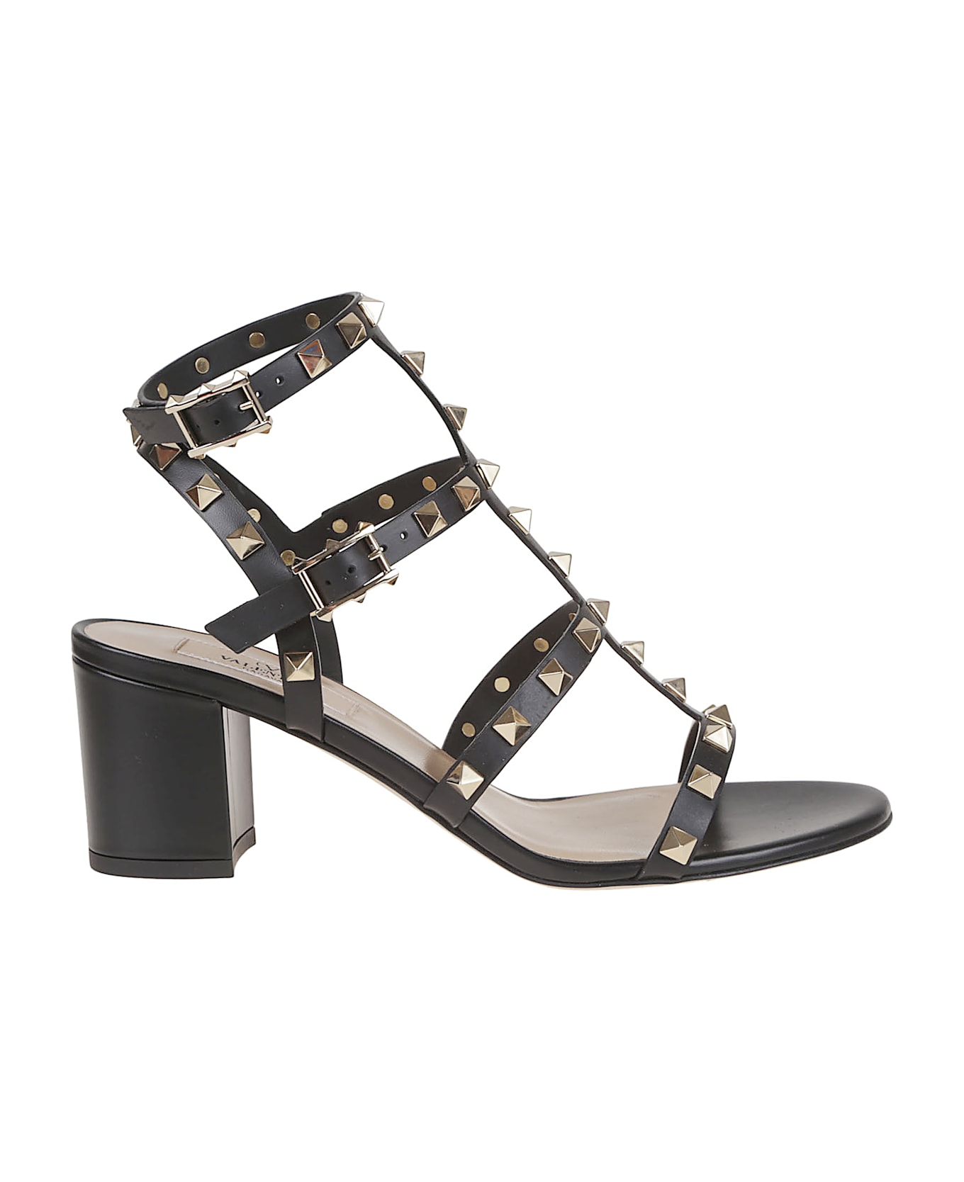 Rockstud sandal in calfskin BY VALENTINO GARAVANI. Adjustable ankle straps. Heel: 6cm