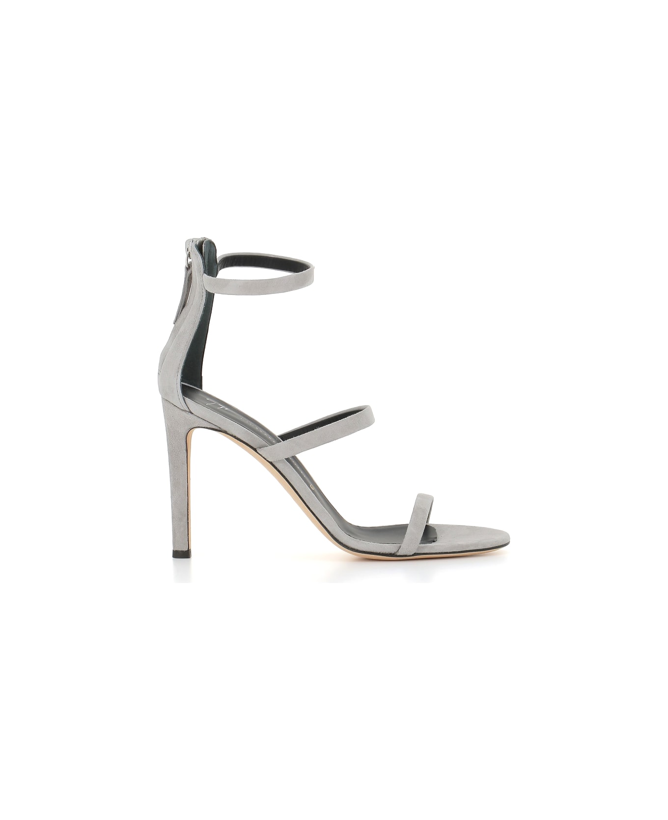 Grey suede leather Sandal from Giuseppe Zanotti, featuring by a zip and three strap tone on tone. Leather sole. Heel: 10 cm
