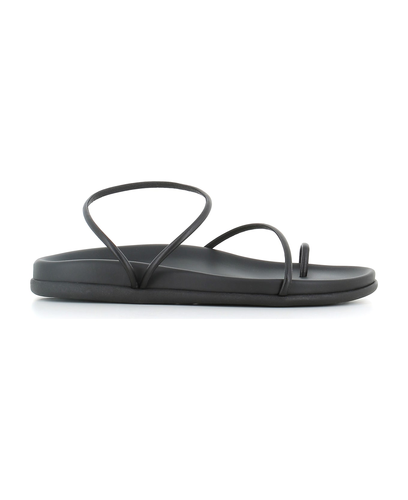 Black leather women's sandal by Ancient Greek Sandals, featuring by ecoleather soft straps and a padded insole. High rubber fund. Heel: 3 cm