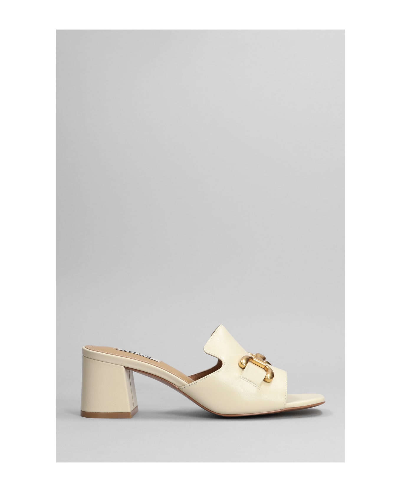 Sandals in beige leather, square open toe, 70 mm heel, horsebit detail, gold hardware, 100% leather, Made in Spain