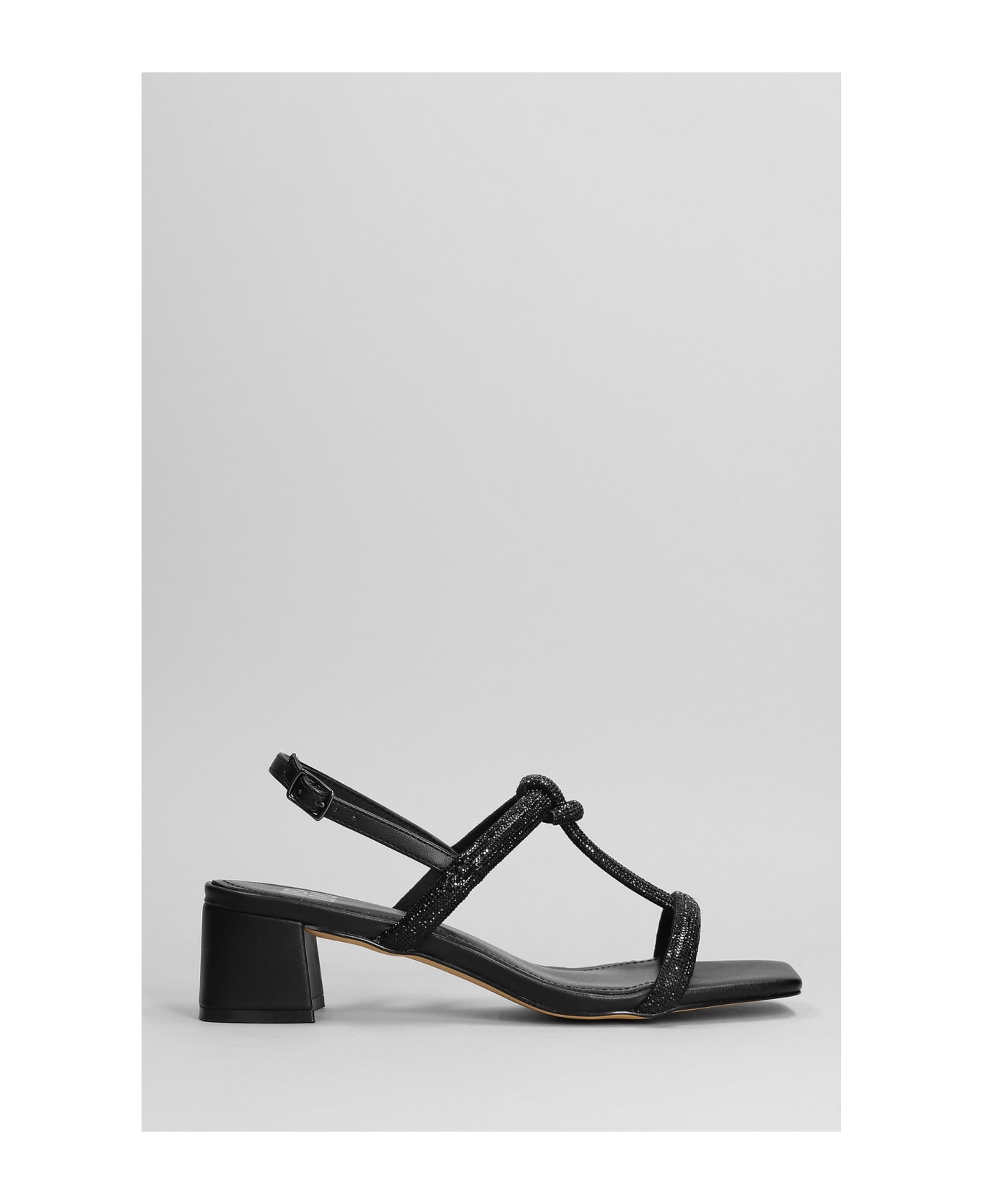 Sandals in black leather, two straps, heel strap, strass detail, 100% leather, leather sole, heel 55mm, Made in Spain