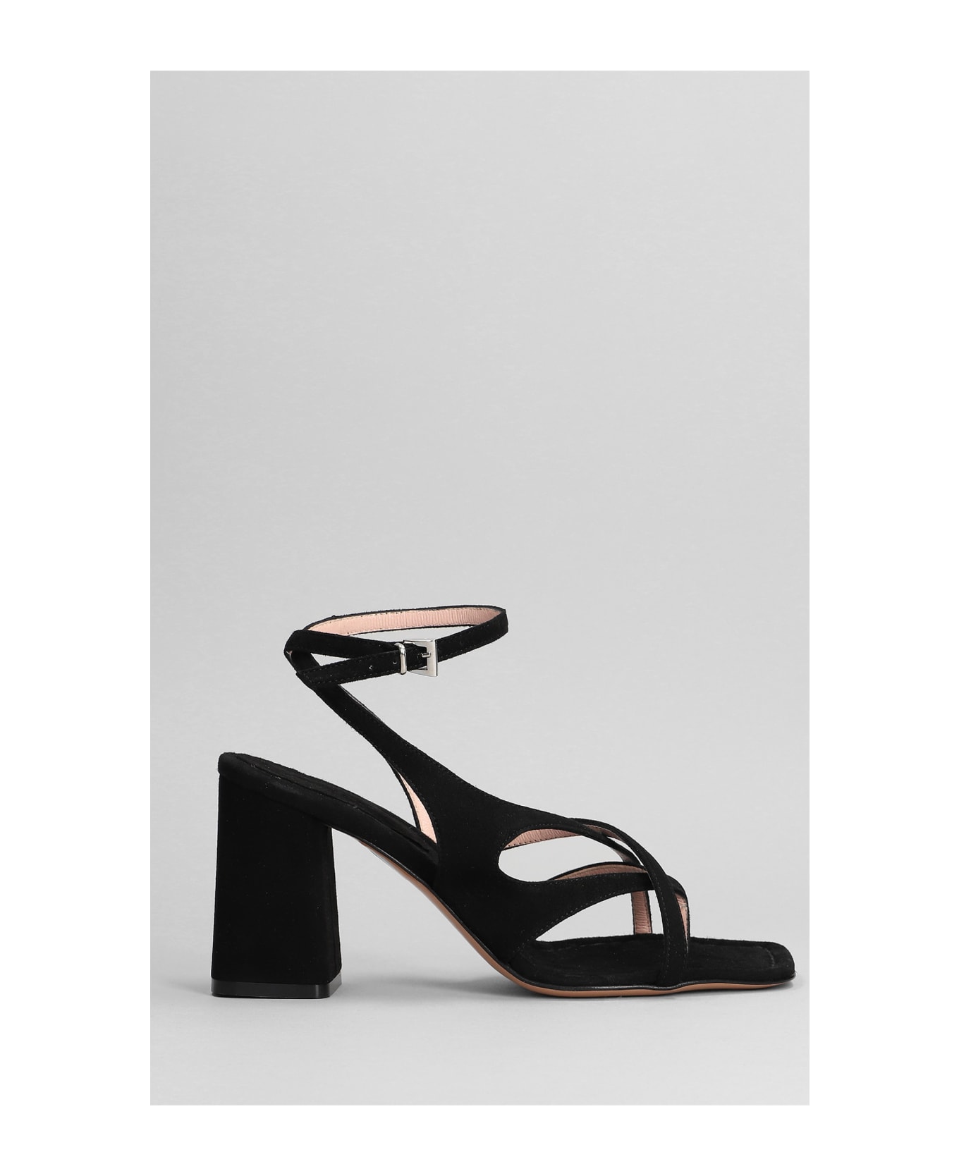 Sandals in black suede, ankle strap, square open toe, heel 90 mm, leather sole, 100% suede