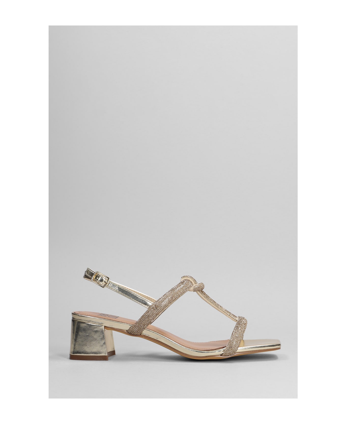 Sandals in gold leather, two straps, heel strap, strass detail, 100% leather, leather sole, heel 55mm, Made in Spain