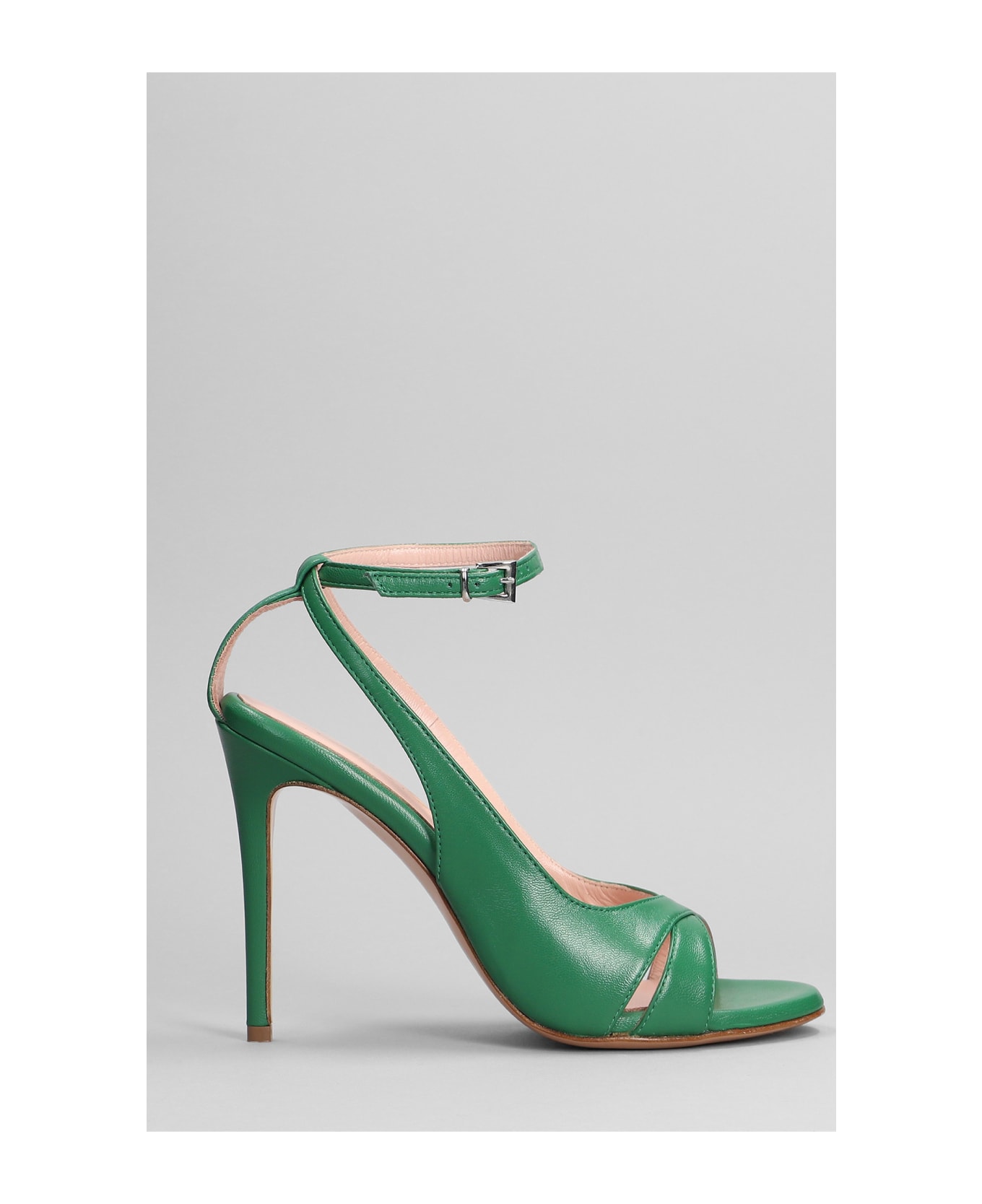 Sandals in green leather, ankle strap, cut out detail, 100% leather, heel 115mm, leather sole, Made in Italy