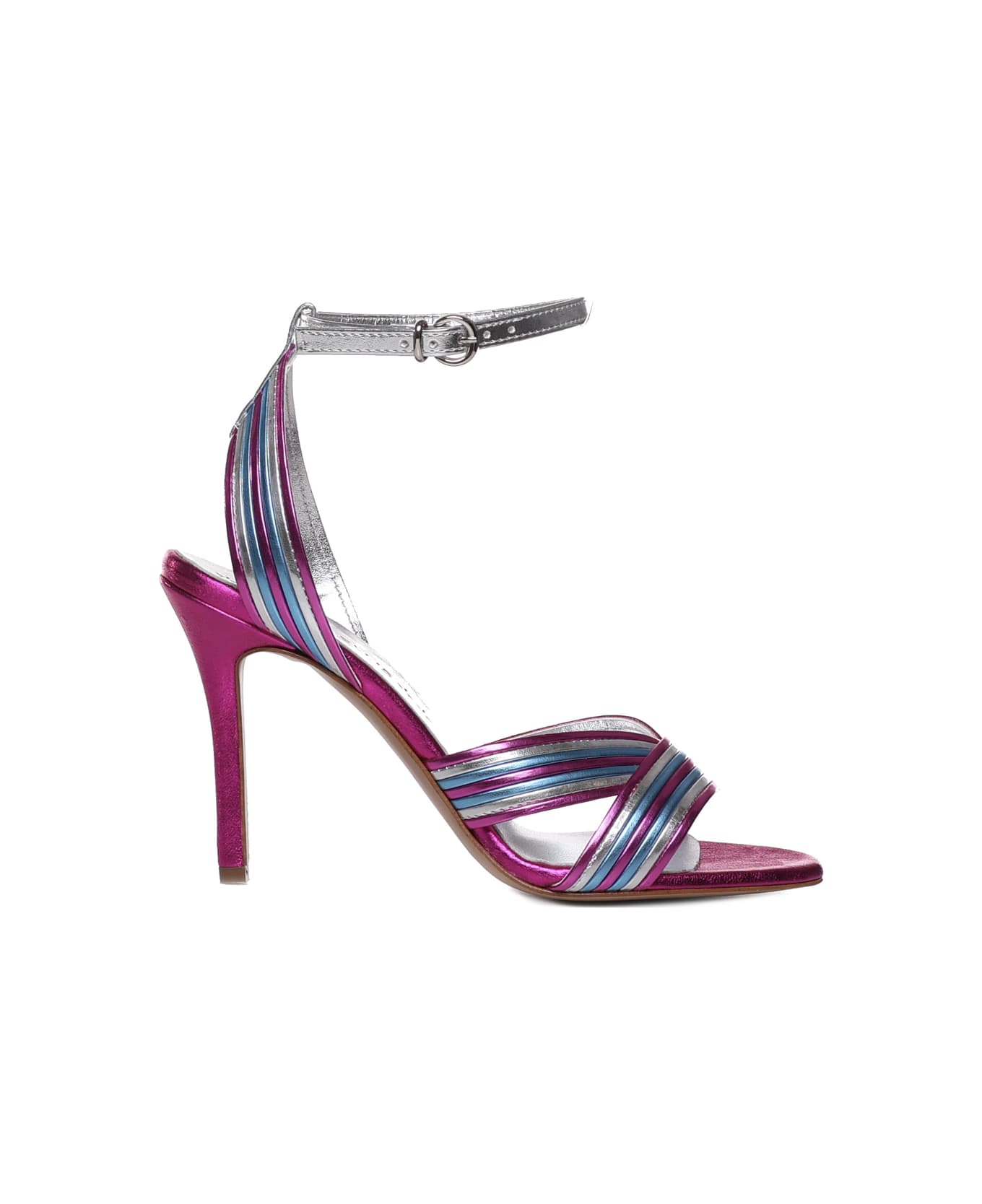 Fuxia Sandals With Heel And Lamè Bands from Marc Ellis -Sandals with lamè bands -Ankle strap -Heel: 10 cm -Made in Italy -Colour: Fuchsia -100% Leather